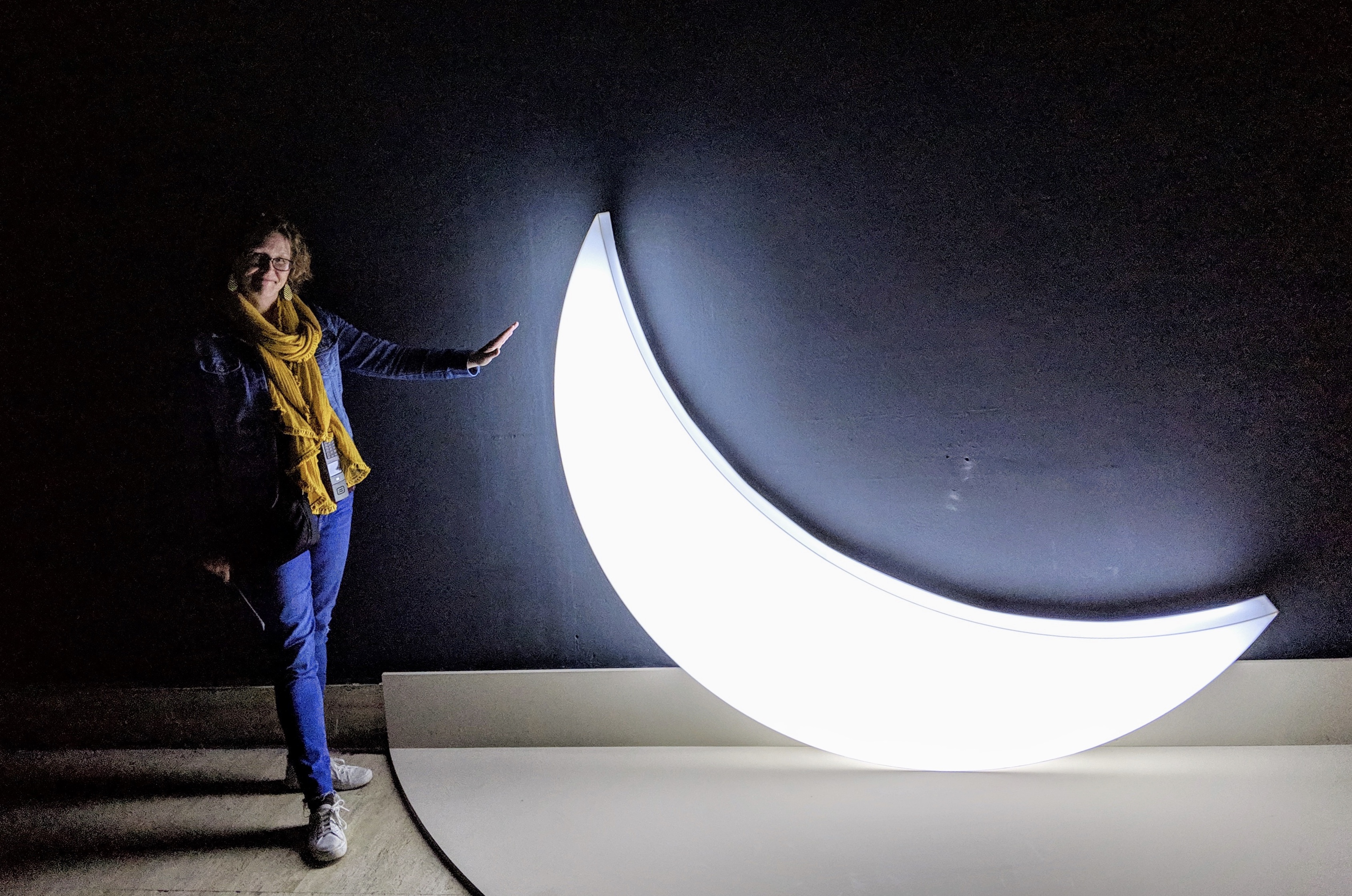 For lunch we opted for a very American meal… Five Guys!  The food was just as delicious as at home in California, and we were all delighted to indulge in burgers and fries for a meal.   After lunch we headed over to the Grand Palais, a museum which hosts temporary exhibitions.  We’d read about the thematic exhibition there entitled La Lune, which showcased the variety of ways humanity has interacted with the moon.  And a very interesting exhibit it was!  The show began with artifacts from the first lunar landing, then offered snippets of early sci-fi films based on imagined aliens and moonscapes, then turned to Galileo and other early Western astronomers, then moved to art that contained the moon as an element (from many eras and cultures), then considered the varied depictions of the moon as a person or deity, and finally ended with gorgeous landscape paintings at night, with the moon as the light source. An utterly charming exhibit, and certainly unusual in its variety and approach.  We really enjoyed it!