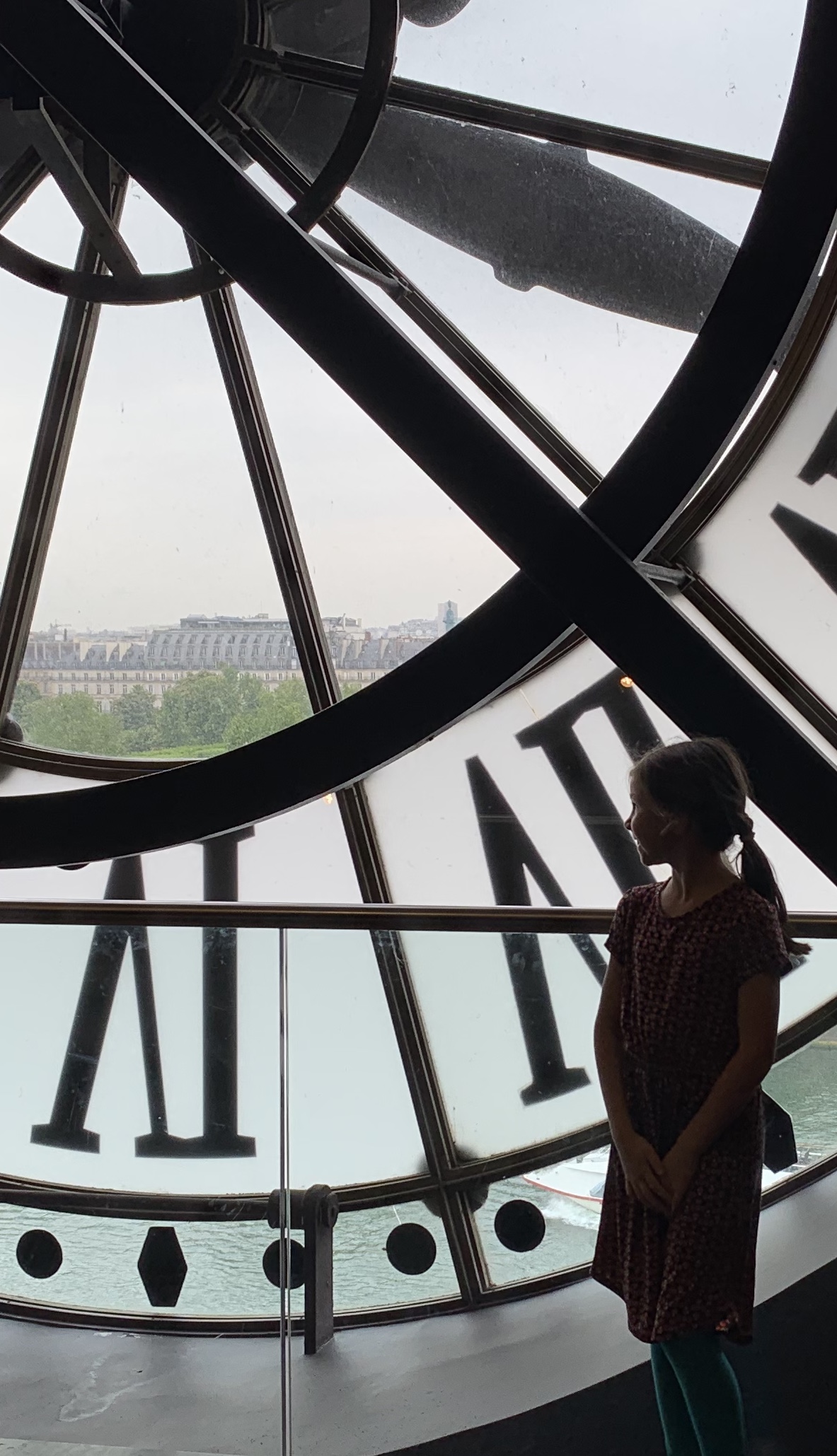 Penelope enjoyed the 3-D transformation of the building from train station to art museum, took a picture next to the statue of Homer’s Penelope, and asked me to capture this portrait of a girl and her cat, by Renoir.