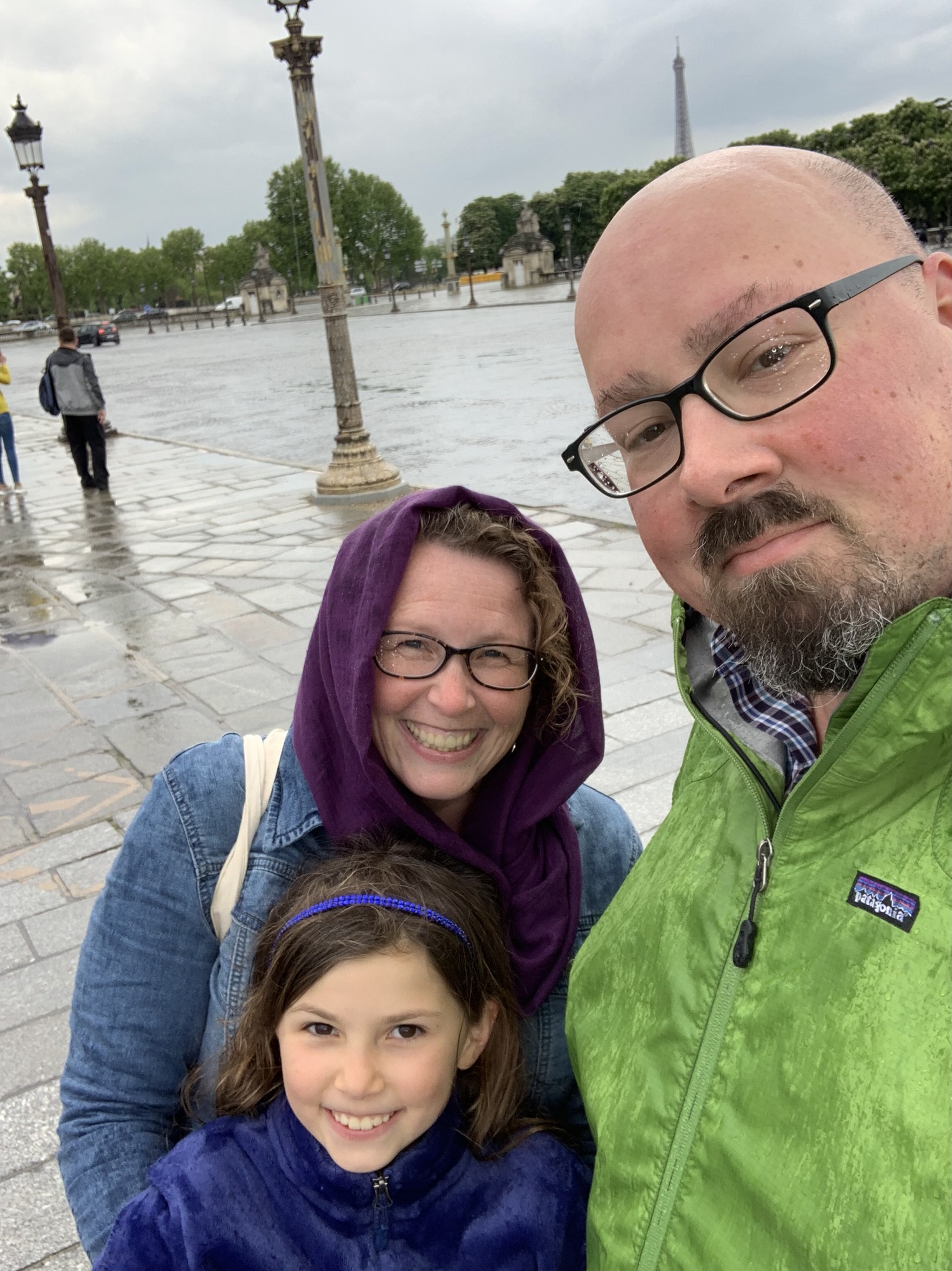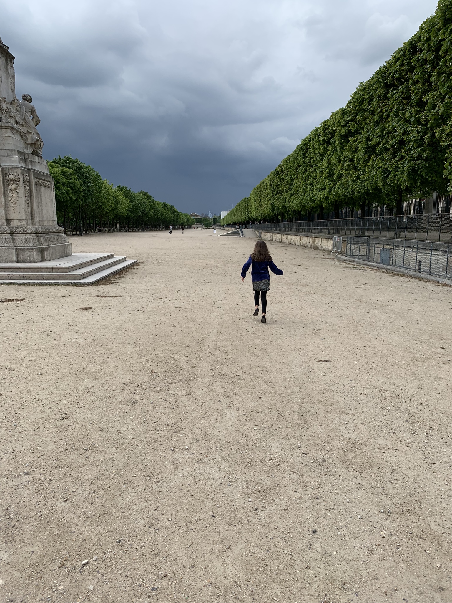 Several hours later, we finished our tour of the museum and headed outside to the Tuileries Gardens and their large playground.  Penelope was delighted, and we all blithely ignored the massing storm clouds overhead.