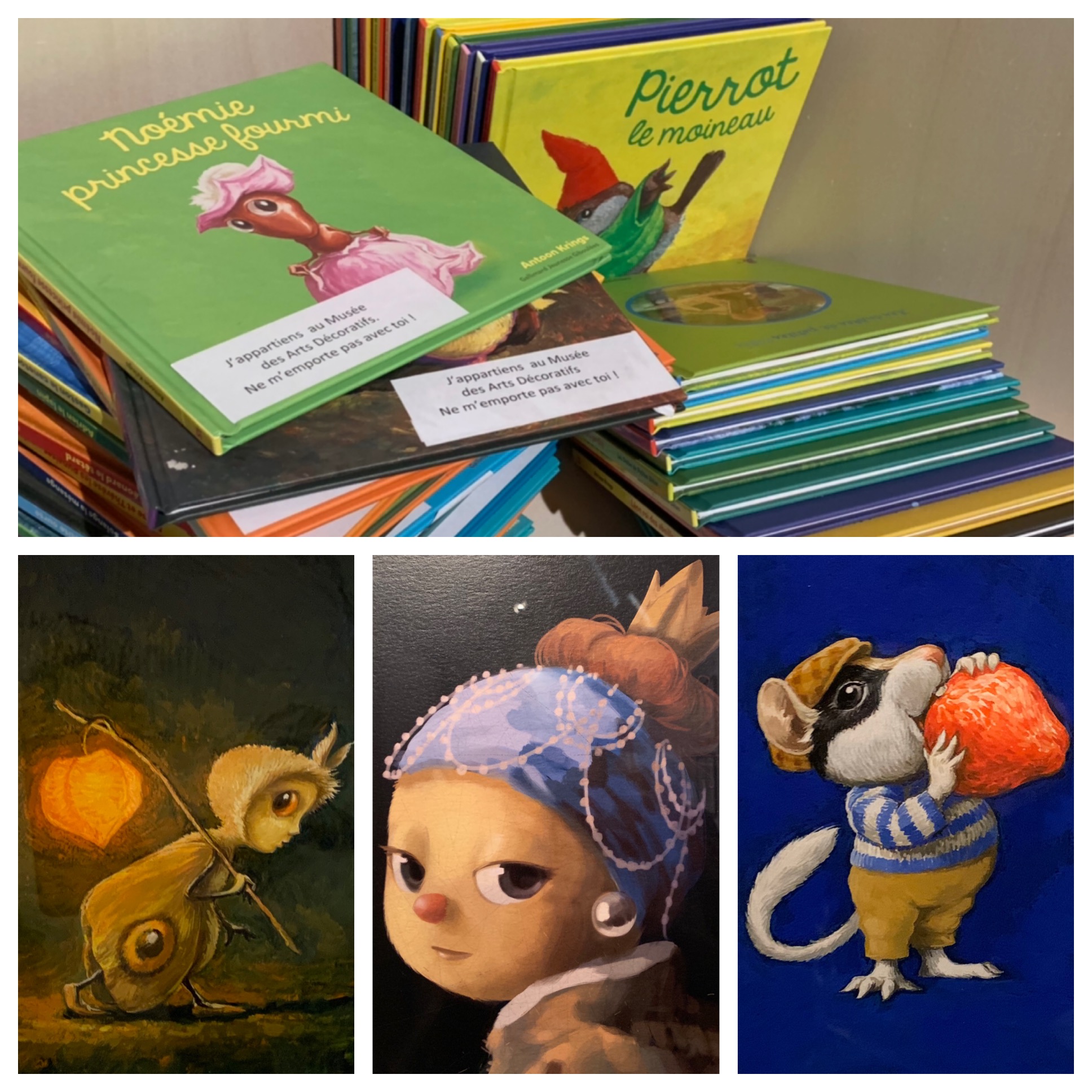 But before we even entered that part of the museum, we were sidetracked by the most absolutely charming exhibit: Droles de Petites Betes d’Antoon Krings.  This wonderful exhibit showcased the art of children’s author and illustrator Antoon Krings.  Penelope recognized his work at once as we were entering the museum, so we added the exhibition to our tickets and headed upstairs.  She’d brought home some of his charming books (Benjamin le Lutin, Mireille l’Abeille) from school, so I had some sense of his work—and the exhibition itself was wonderful.  Cleverly designed and charmingly presented, the exhibit was hands down one of the best we’ve seen in our travels.  Krings’ art was presented alongside other illustrations, paintings, and historical context—and, at the same time, the galleries were peppered with child-size wonders, like tiny doors that opened into miniature windows on imaginary gardens, small arches into the next rooms, perfectly sized for children, and best of all, a small house in one room, complete with all of Krings’ books.  Many families could be found there, reading the books to one another as they paused in their tour of the galleries.