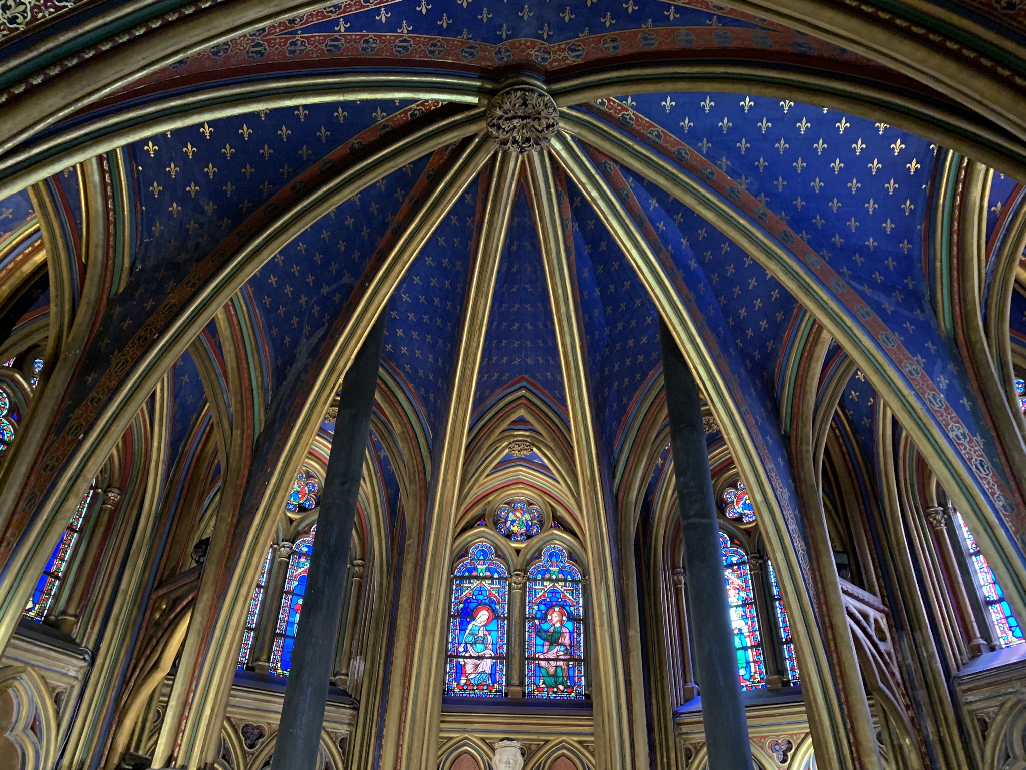 We walked back from the market to meet Jeremy, and after lunch headed back out to my favorite church: Sainte Chapelle.  I think I would love Sainte Chapelle even if it only had the lower level—I love the painted ceiling and the human scale of the place.  But then you walk up that small spiral staircase, and you are positively dazzled by the light from all of the stained glass.  No place like it.