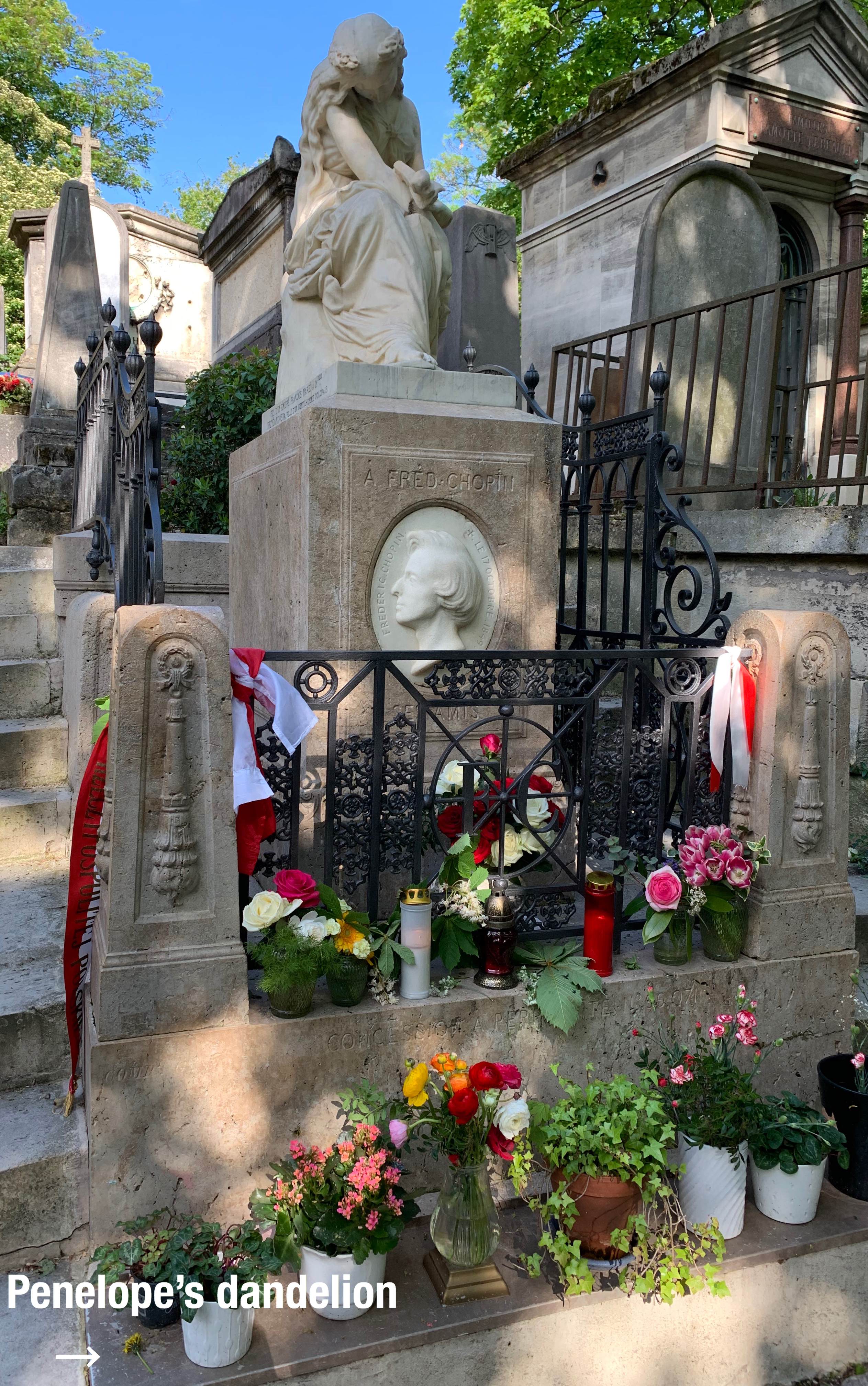 Midway through the walk, Penelope decided she wanted to add memorial flowers to particular graves. Here, her offering at Chopin’s grave.