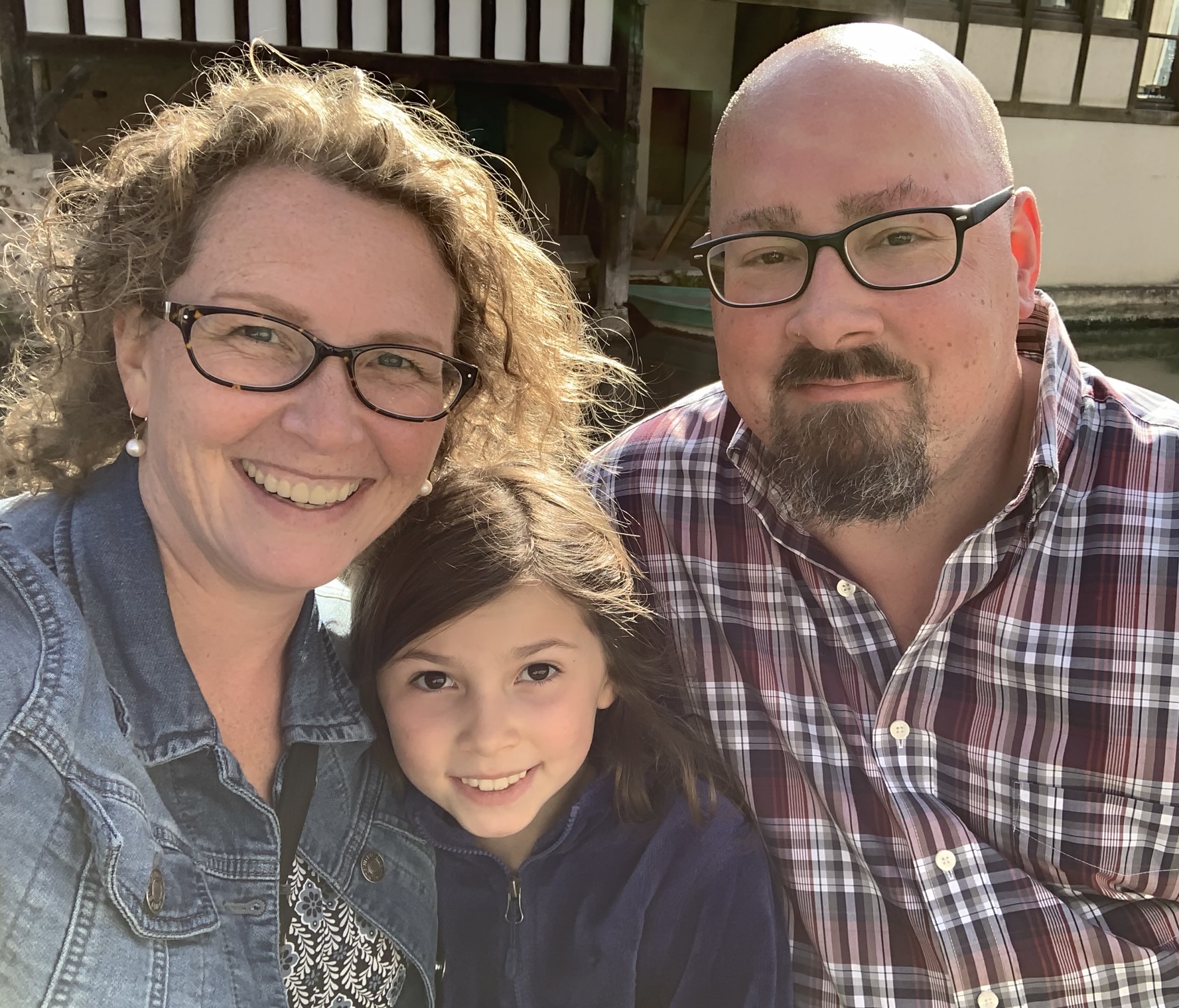 After our repast, we continued through the town, enjoying a walk along the river, spotting a half-timbered spiral staircase, and taking a traditional family selfie.