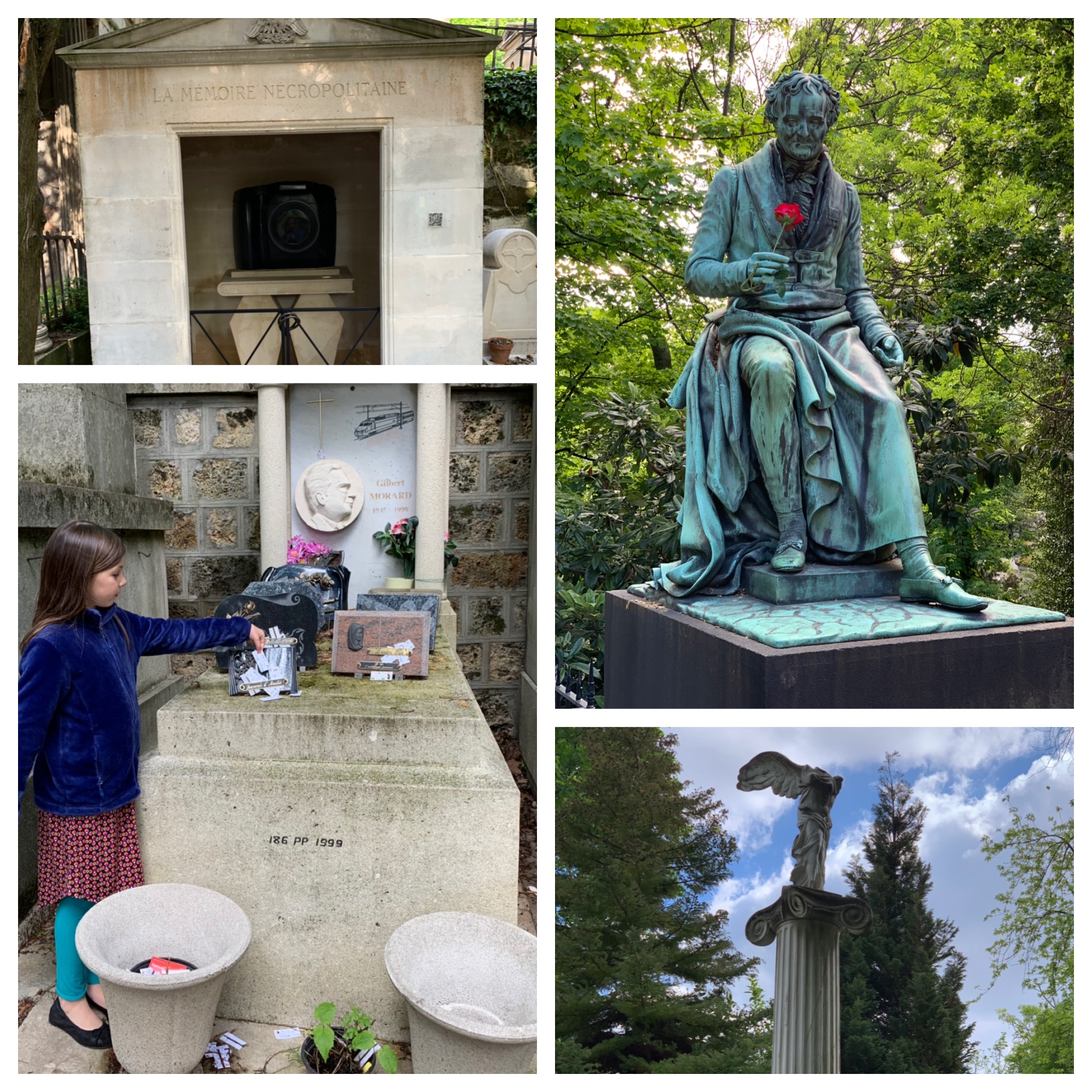 To cap the day, we decided to take the metro over to the Pere Lachaise Cemetery, where we took the Rick Steves walking tour via his terrific audioguide.  This one was perhaps one of the best we’ve listened to, as it incorporated music throughout.   Approaching Edith Piaf’s grave, we heard her wonderful warbling—then Jim Morrison and The Doors, followed by Chopin.  Even some excerpts of poetry from Oscar Wilde and Gertrude Stein.  It was a terrific tour, and we very much enjoyed the quiet beauty of this enormous cemetery.  (And when I say enormous… it really is.  Bigger than Disneyland Paris, according to Monsieur Steves.)