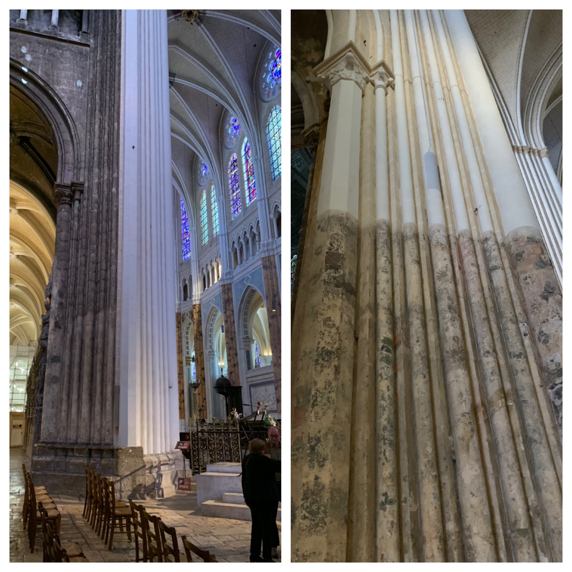 A restoration and cleaning is well underway, both inside and out, and it was fascinating to see the difference that cleaning made.  Here are two pics—you can see the difference vertically on the left, and horizontally on the right—it was really quite amazing.