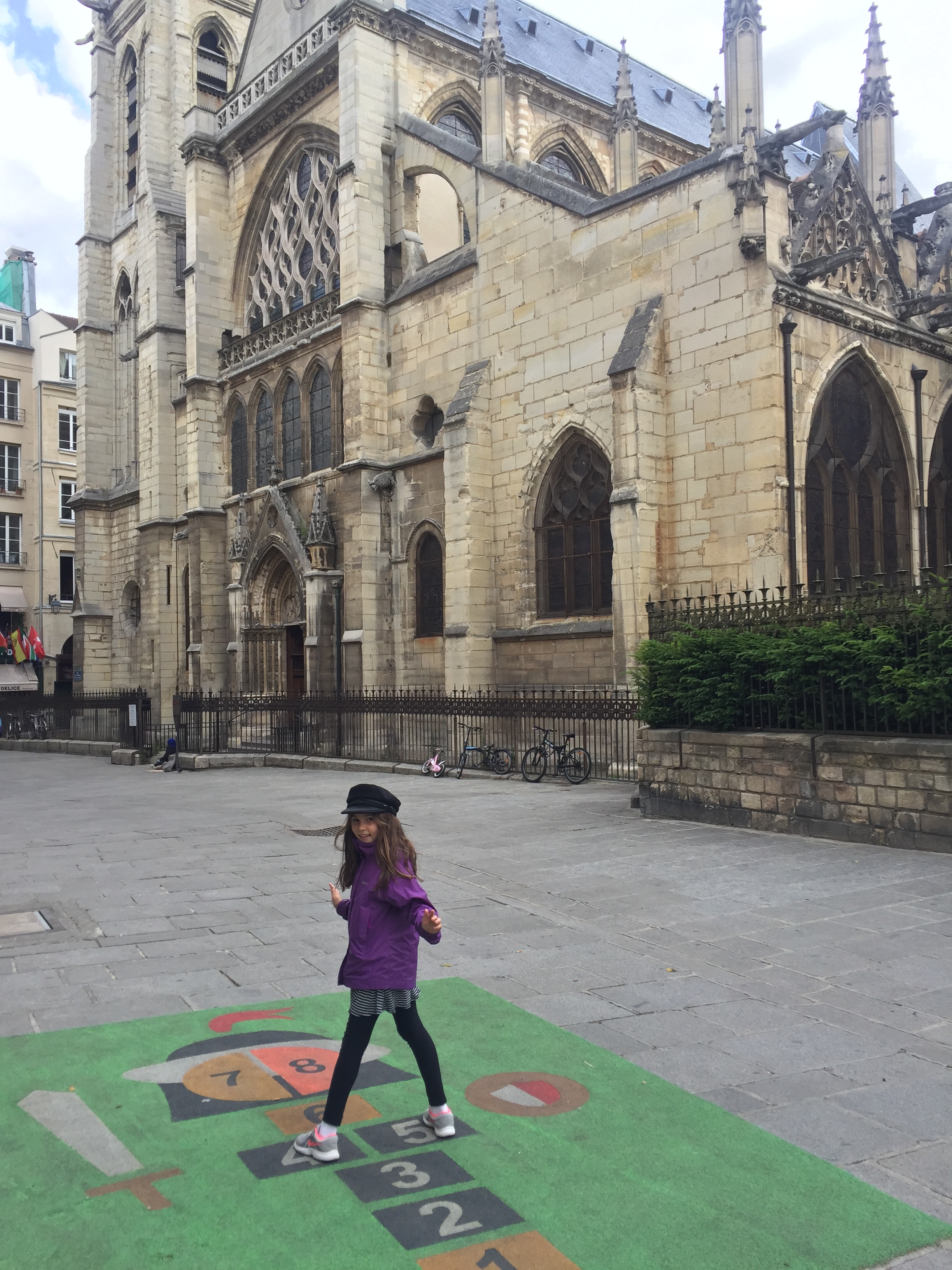 On the way home we stopped at two different playgrounds—one near the Bon Marche, then after a metro ride, Grandpa took Penelope to our local playground for another hour or so.