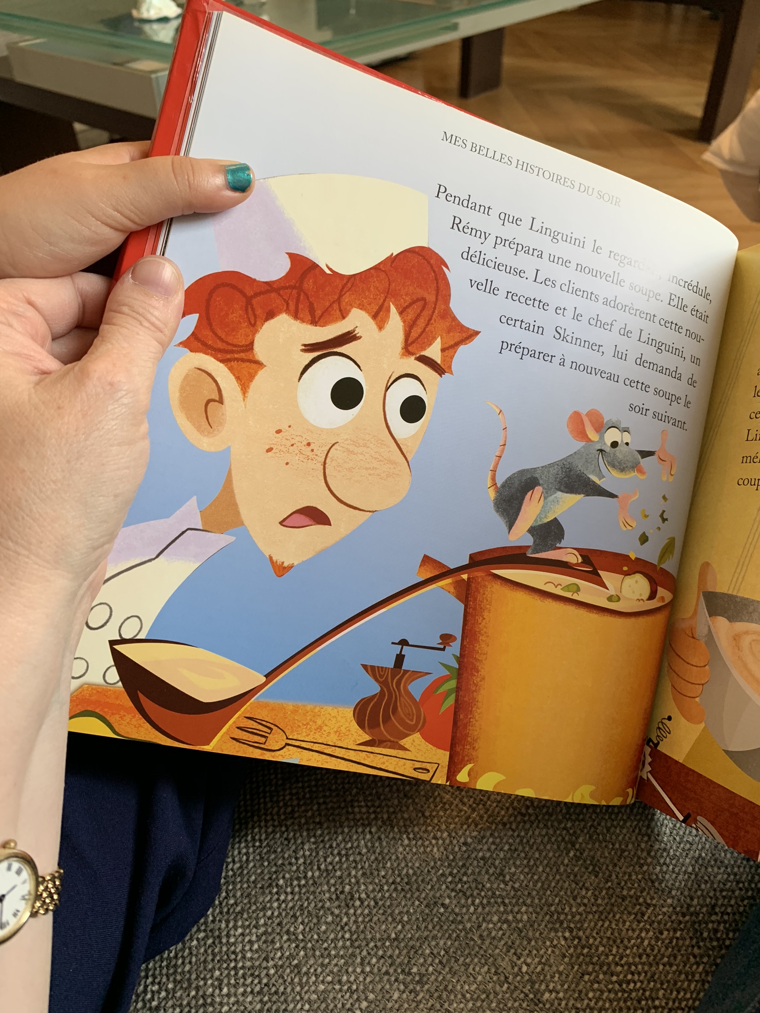 Monday was our eagerly anticipated trip to see La Grande Souris at Disneyland Paris.  My absolute favorite Pixar movie is Ratatouille, and I’d booked us a lunch at Bistro Chez Remy.  They’ve recreated the rat restaurant from the final scenes of the film, so that diners are ostensibly rat-sized, and all of the details from the human world are gigantic.  It was every bit as charming as I imagined it would be… and we had the best time!