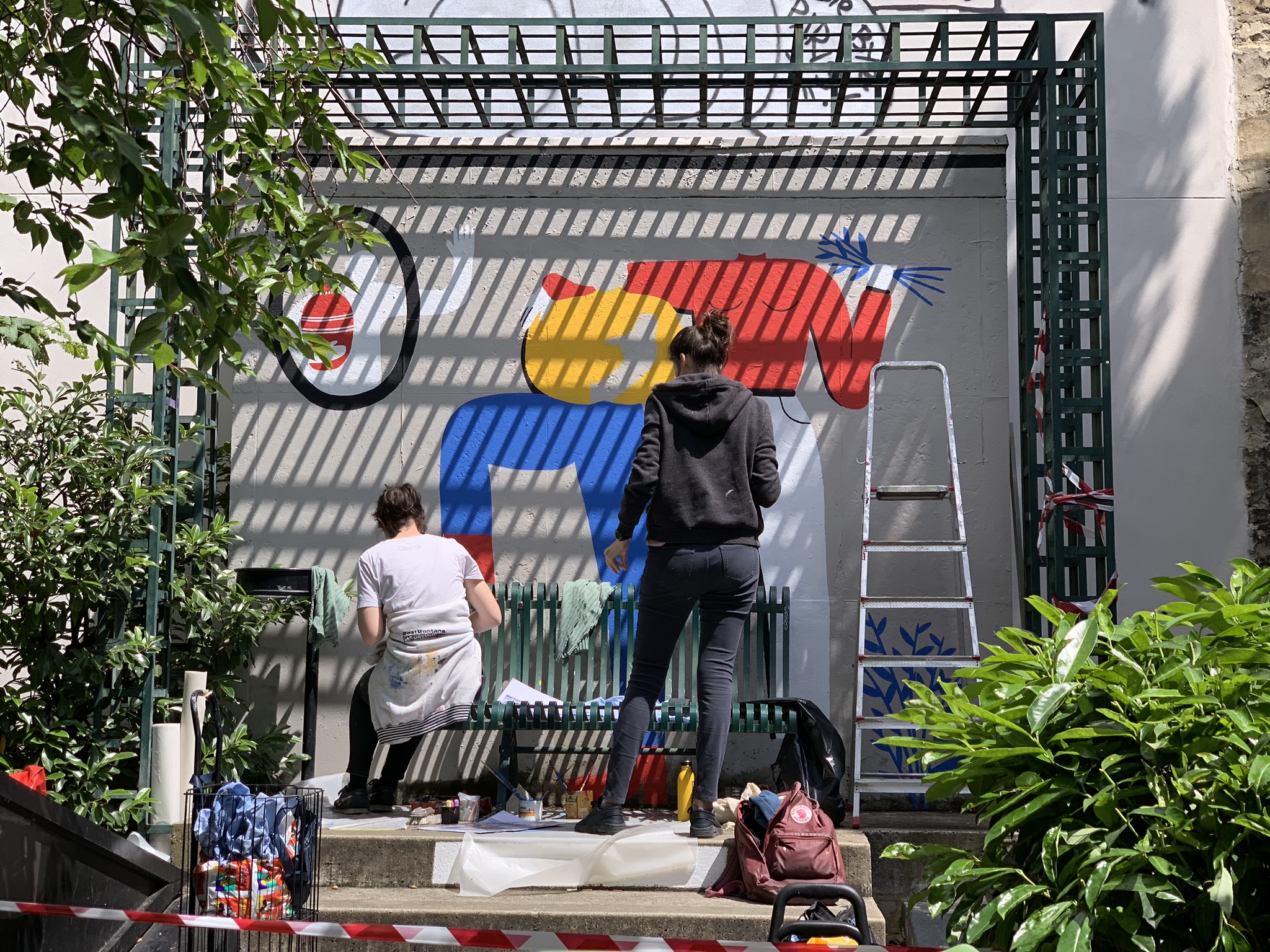 When we arrived at the Roman arena, Sophie’s grandparents helpfully shared a bit of its history—how it was built and used when this part of Paris was a Roman city.  The arena even hosted naval battles!  Today, however, the space was being set up for a weekend festival, with an arts and crafts market, musical performances, and other artistic endeavors (in lieu of the usual petanque or football played on the open space).  We watched one performer for a bit—a mélange of physical comedy and juggling tricks, combined with all-body application of wet clay.  Quite something!