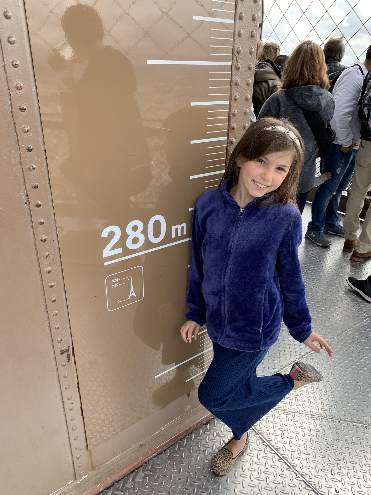 Wednesday my folks decided to stay home and take an administrative day, but Penelope and I had other plans.  We woke up bright and early to head west to… the Eiffel Tower!  We’ve had many glimpses of the Iron Lady from various vantage points around Paris, but Penelope’s Paris wish list included going right to the top.  Advance reservations for the elevator to the summit were sold out for the month of June, so we’d decided to try our luck at an early arrival and hope for the best.