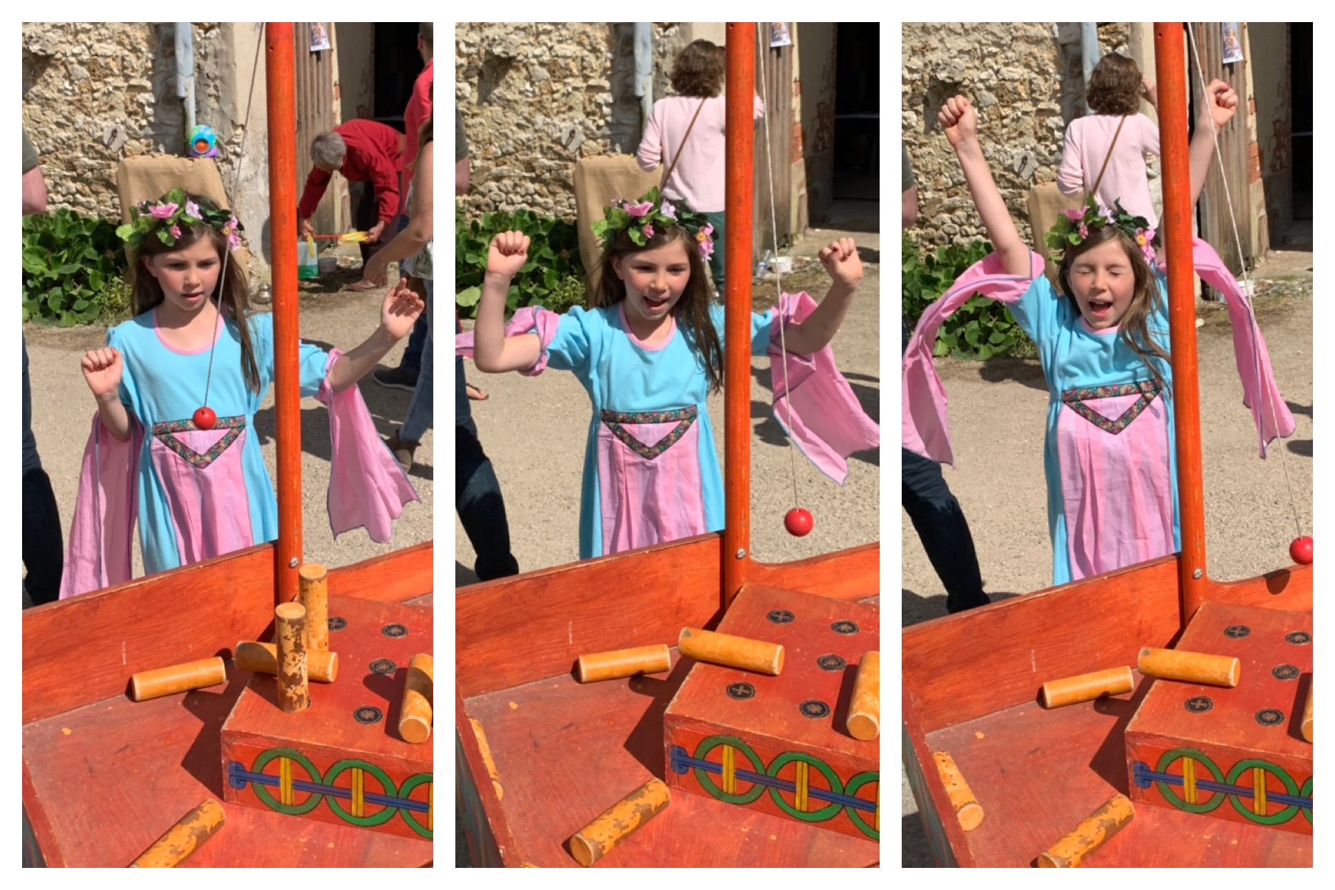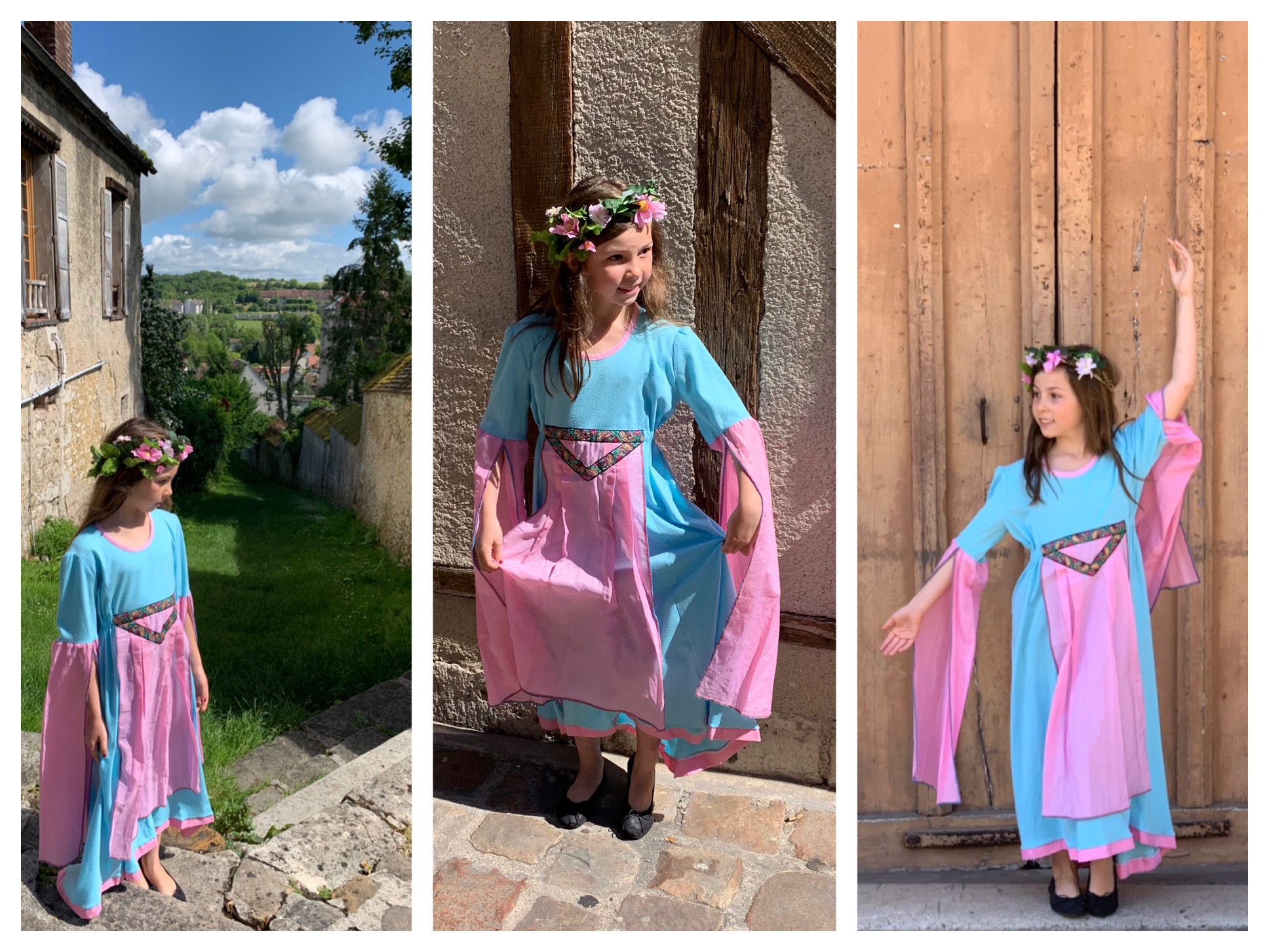 We’d tried to order Penelope a medieval dress in advance, but had no luck… fortunately, there was a seamstress at the festival who had a warehouse filled with beautiful creations, ready to rent for the day. Penelope selected this lovely gown and spent the ensuing hour (and whole day, really) dancing and posing in her new outfit, complete with flower crown.