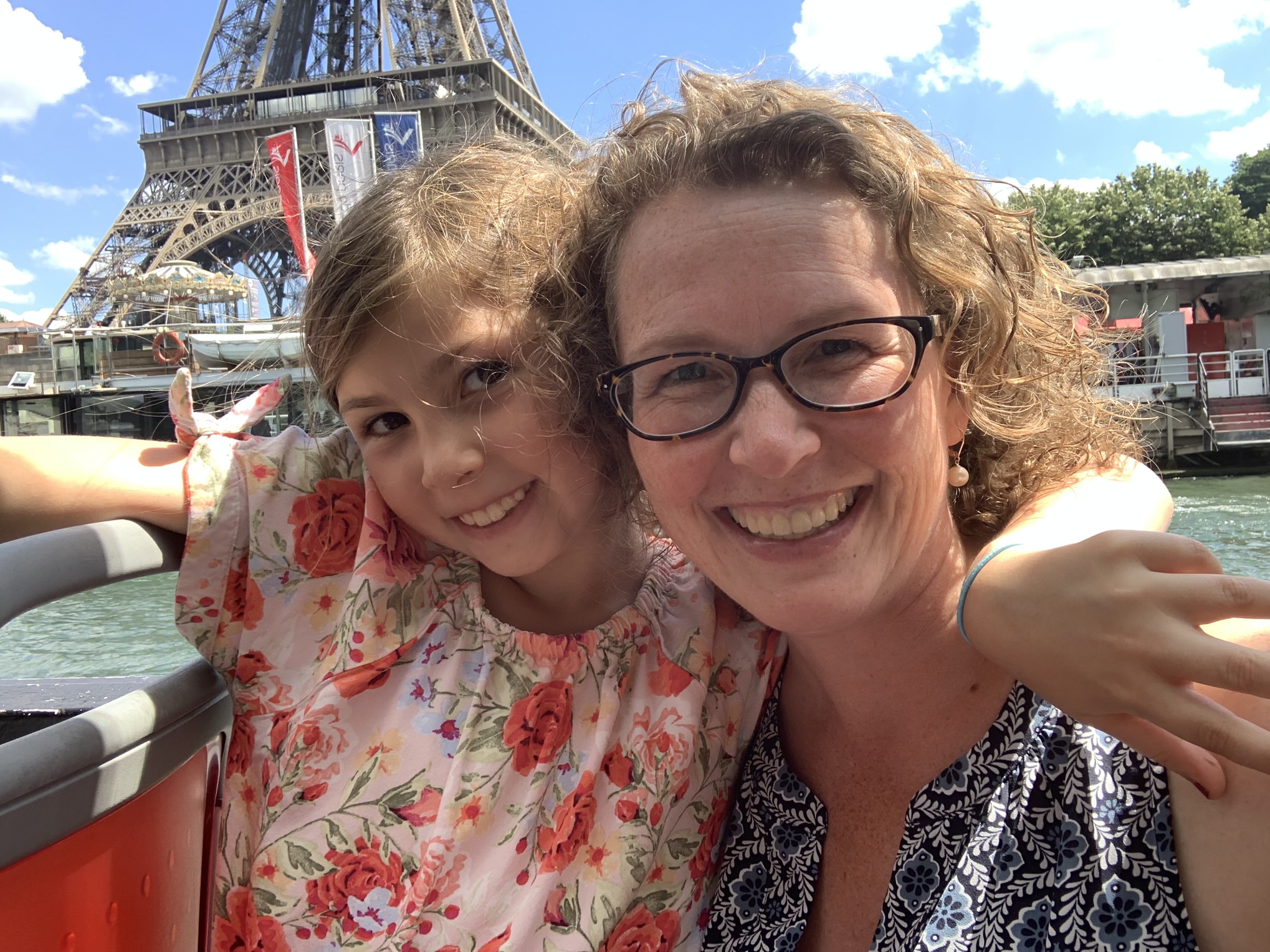 Monday morning we all spent the morning at home, enjoying a lazy day after yesterday’s big outing.  But by early afternoon, Penelope and I were ready to cross off one more item from her Paris wish list: cruising the Seine.  As with Versailles and the Eiffel Tower, my parents have been many times on river cruises, and they decided to stay home and work on planning the next leg of their travels: eight weeks in England and Scotland.