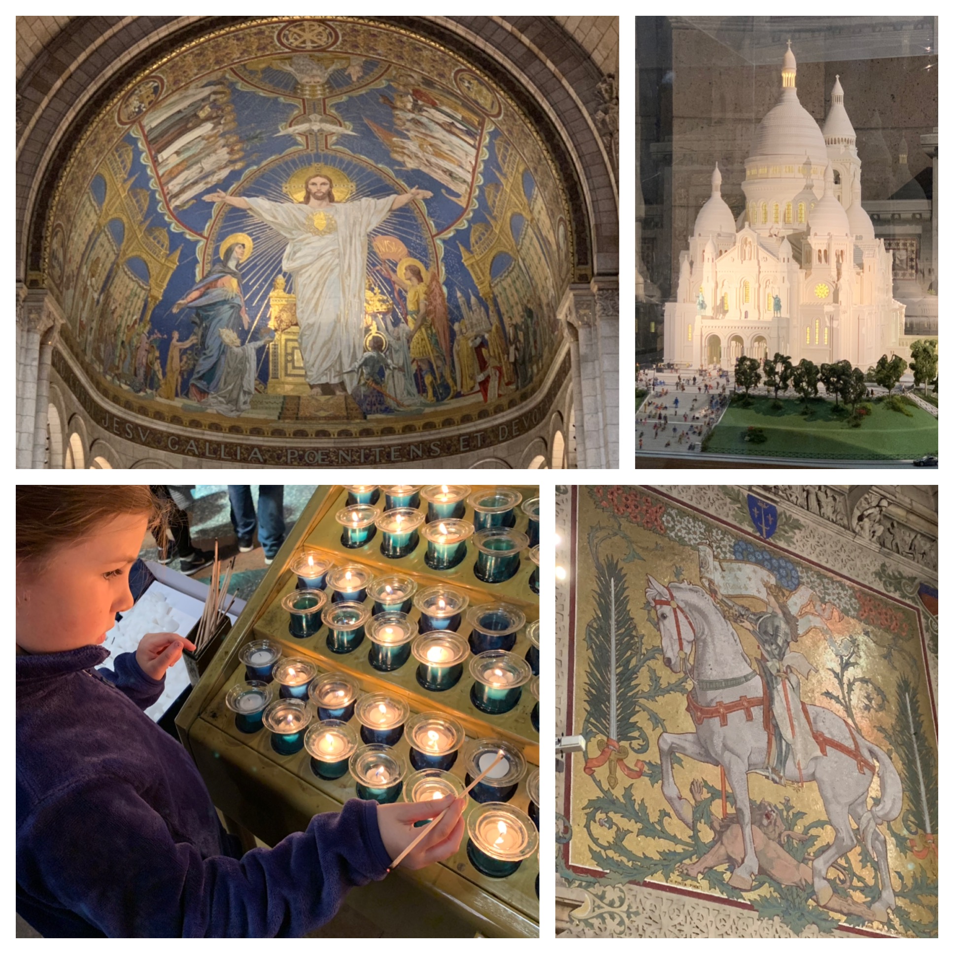 Once there, we surveyed all of Paris at our feet, picking out various buildings (the Pompidou stands out most clearly, perhaps), and then turned our attention to the grand church just behind us: Sacre Coeur.