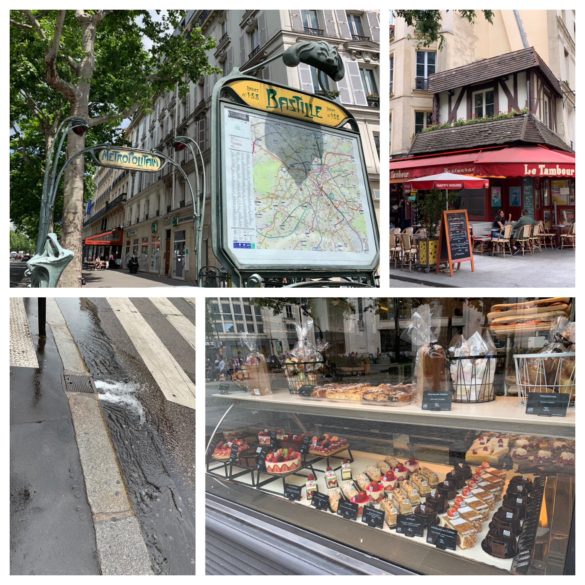 Afterward, I walked the four kilometers back to our apartment, snapping photos of typical French scenery: bistros on every corner, the delightful windows of patisseries, the traditional Metro signs, and even the French practice of rinsing the streets with water gushing through the gutters.  A California born during a drought, Penelope doesn’t believe that explanation—she still insists that there’s a water leak every time we see water flowing down the street.
