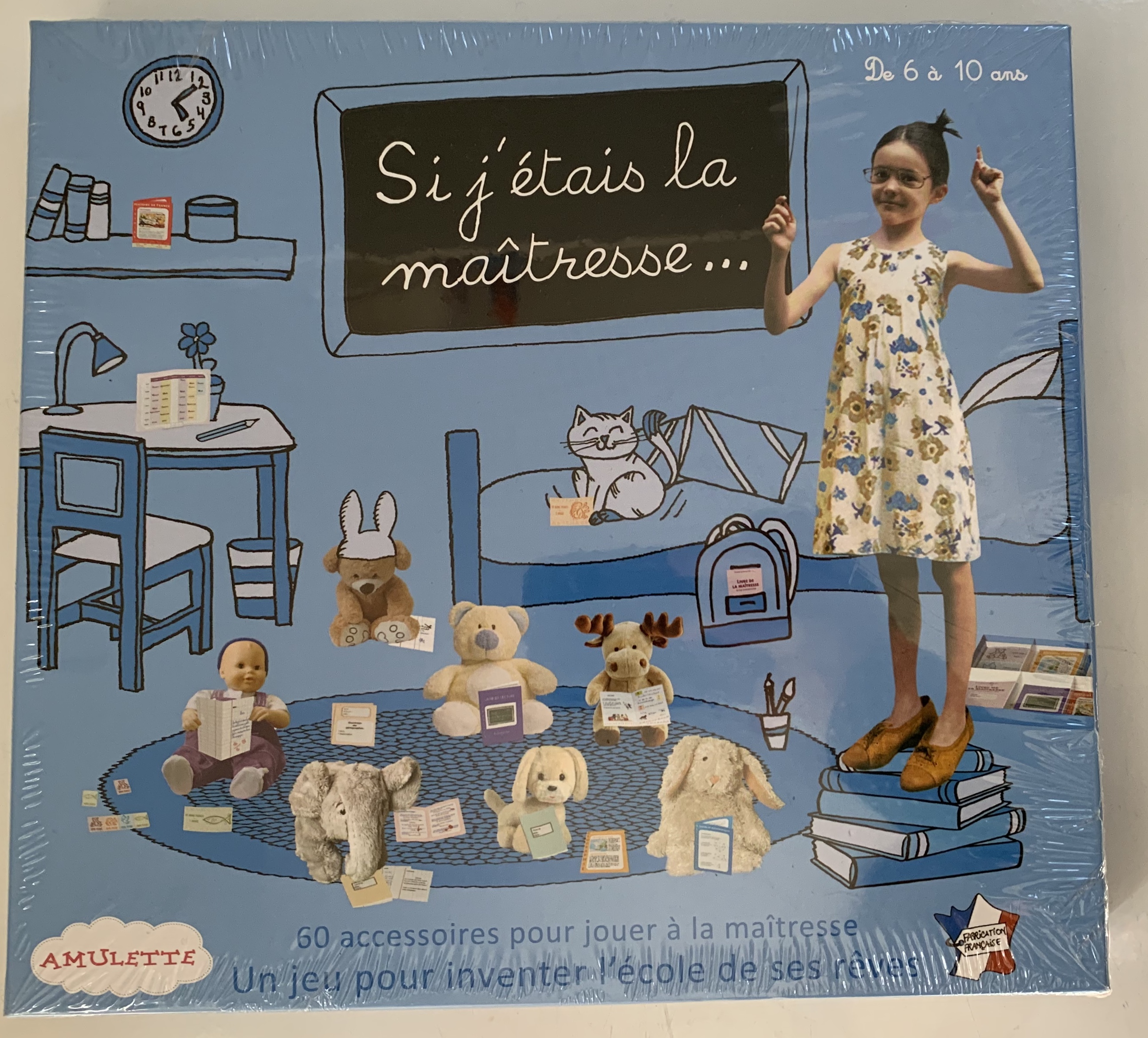 In the Passage Jouffrey I found the toy store we visited in 2014, when Penelope was just three years old—the charmingly named Pain d’Epice.  They have a staggering array of dollhouse furniture, traditional French toys, and wonderful games.  A veritable model of restraint, I selected only two items: a tiny framed Mona Lisa for Penelope’s dollhouse, and a wonderful box of accessories called Si J’Etais La Maitresse.  Inside there are dozens of items for the budding teacher: tiny cahiers, a roll book, award certificates, and textbooks for lesson planning—all perfectly sized for Penelope to use with her dolls and stuffed animals.