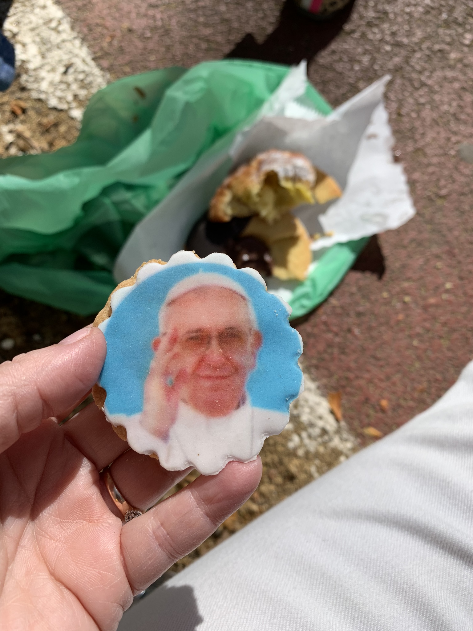 In need of refreshment, we headed north to a nearby pasticceria, the aptly named Dolce Maniera (recommended by Italy connoisseur Lydia). We picked out several pastries by sight alone, and sat down on a nearby sidewalk to indulge.