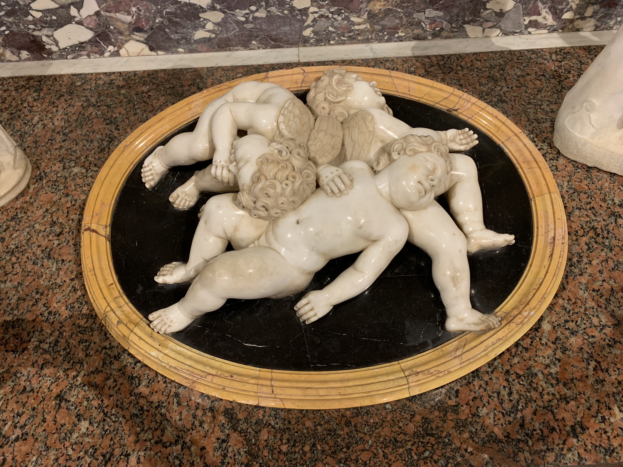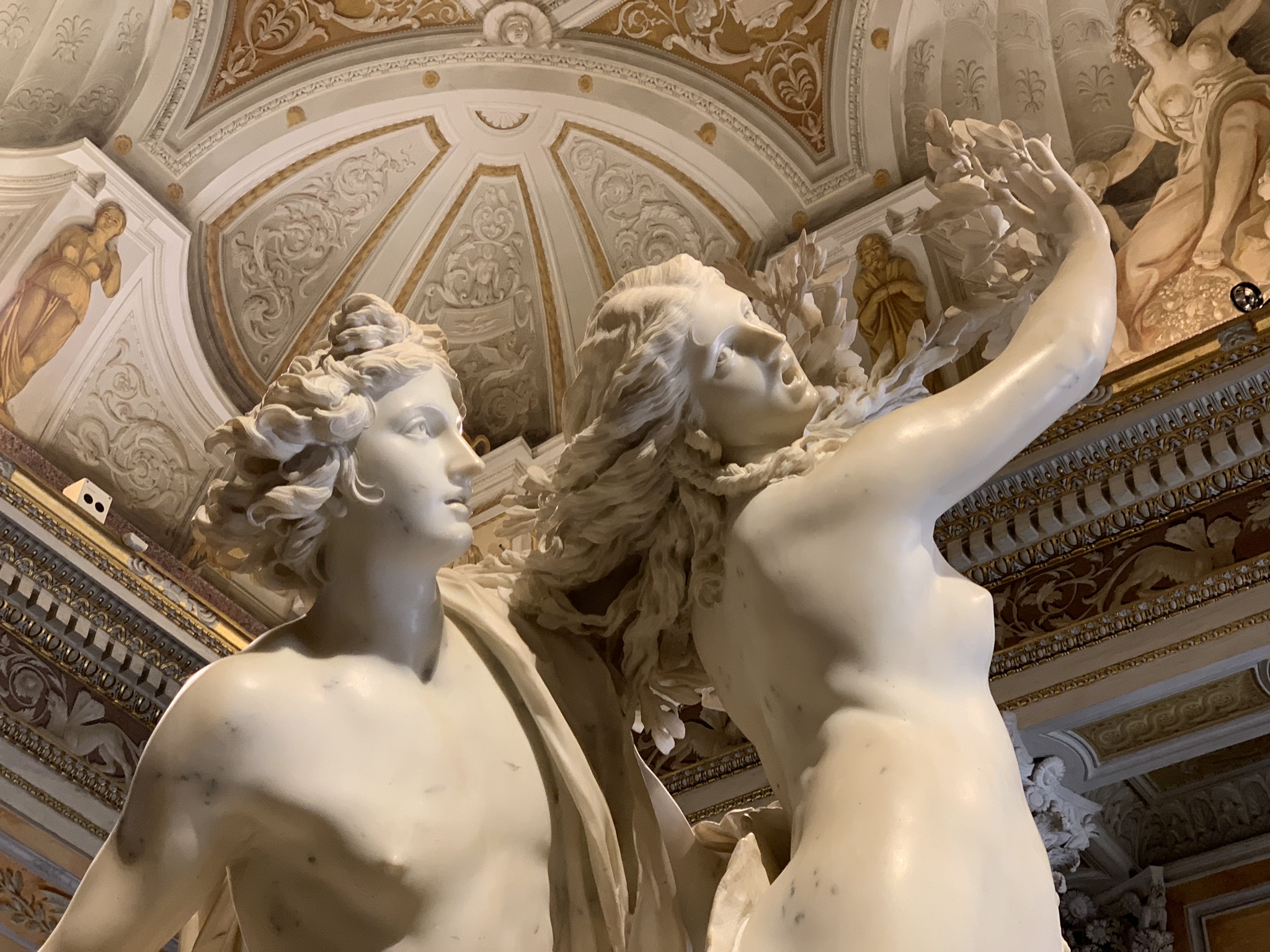 After the market, we went our separate ways, and I left Penelope with her grandparents while Jeremy and I met up for our tour of the Borghese Gallery. The number of visitors is strictly limited and the tickets are timed at both entry and exit—you have two hours to complete your tour of the palace. But wow, was it fabulous. Such a pleasure to see art in its original habitat—in some cases, in the very rooms for which the sculptures were designed. Mosaics, trompe l’oeil, marble sculptures, paintings—this museum has it all. Some of my favorites: