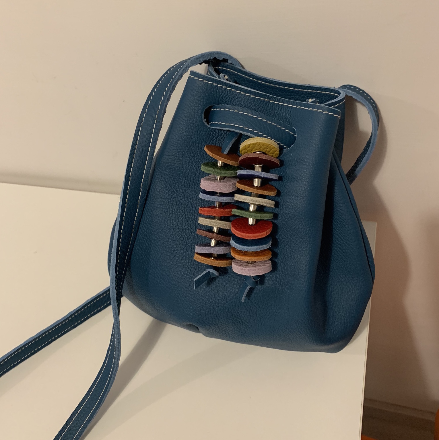 In the end, I decided the purse I liked best of all was back at shop just around the corner from our apartment. When I stopped back in, I asked about the bag in a different color, and the owner/artisan said, sure, we can make that for you. Tomorrow? Thursday? A bit stunned, I said we’d be leaving town tomorrow but perhaps my folks could come by later in the week. But when I stopped by the next morning on our way to the train station, just to check in, my bag was ready! A lovely dark teal color, with bright leather rounds to accent the front—perfect for summer. I have to say I still feel so tickled to have a purse made just for me!