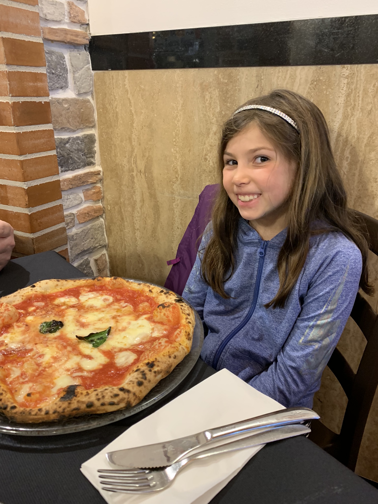 We arrived in Napoli Garibaldi and headed for the Metro, traveling to the area where the museum (and lunch!) awaited. Since we were only planning one meal in Naples, it had to be pizza. We had a fairly tasty lunch, with Penelope delightedly ordering once again her beloved margherita pizza. But Dar Poeta in Rome still has my prize for best pizza in Italy… so far.