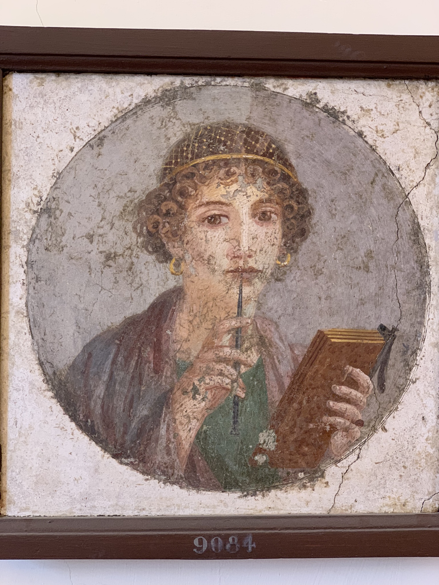 After the mosaics, we headed to the frescoes, where I was delighted to see Girl with a Stylus and Tablets—often called Sappho, from Pompeii.