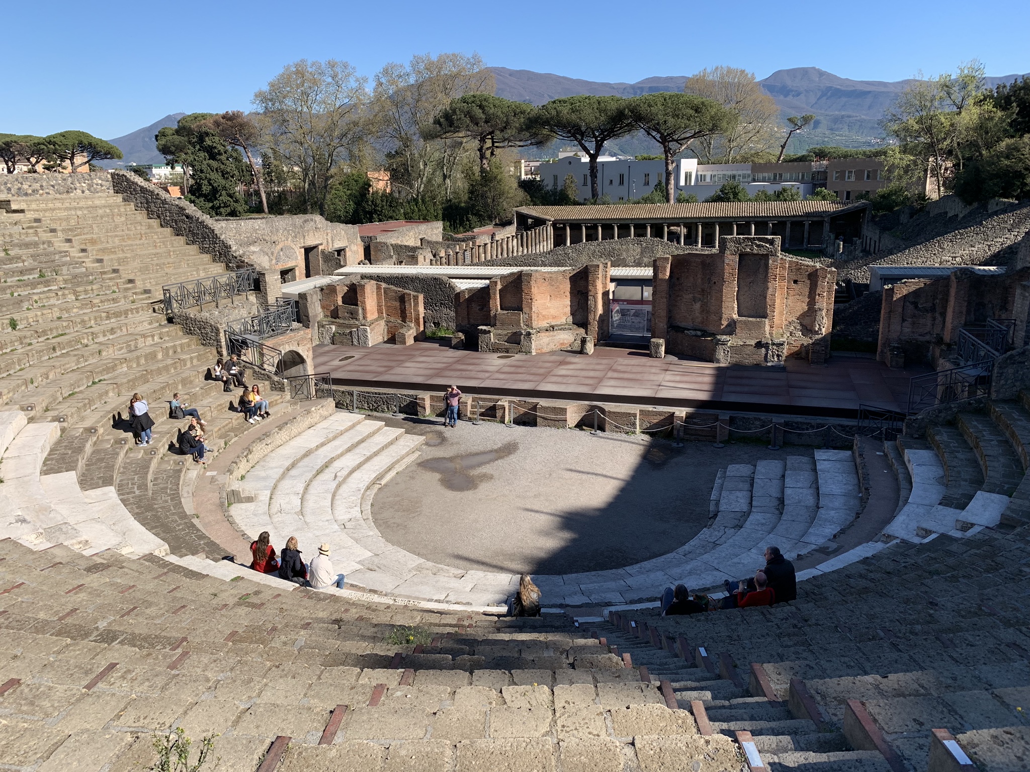 And we loved our last stop: the Greek amphitheater, carved into the hillside, where we climbed to the top to enjoy the view of the stages as both the Greeks and Romans who lived in Pompeii would have done.
