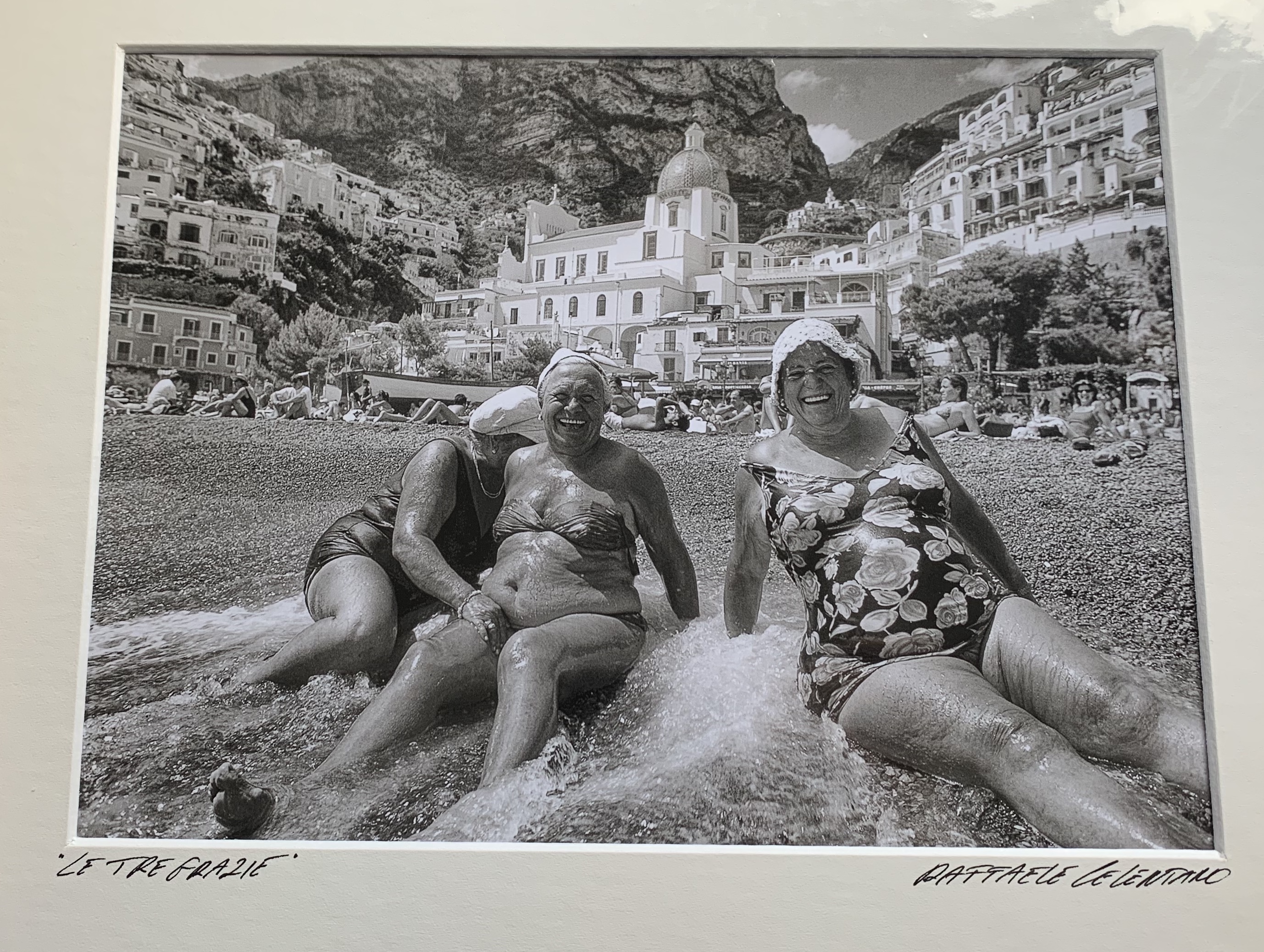 After soaking in some sunshine, we stopped at a nearby photography exhibition. Raffaele Celentano had an exhibit of black and white photography called The Italians, captured over the last two decades—mostly here in southern Italy. While a few were posed, most of the photos were street shots, capturing everyday life: markets, festivals, and laundry day. My favorite was a photo of three older women sitting on the sand at the beach, laughing with a contagious joy.