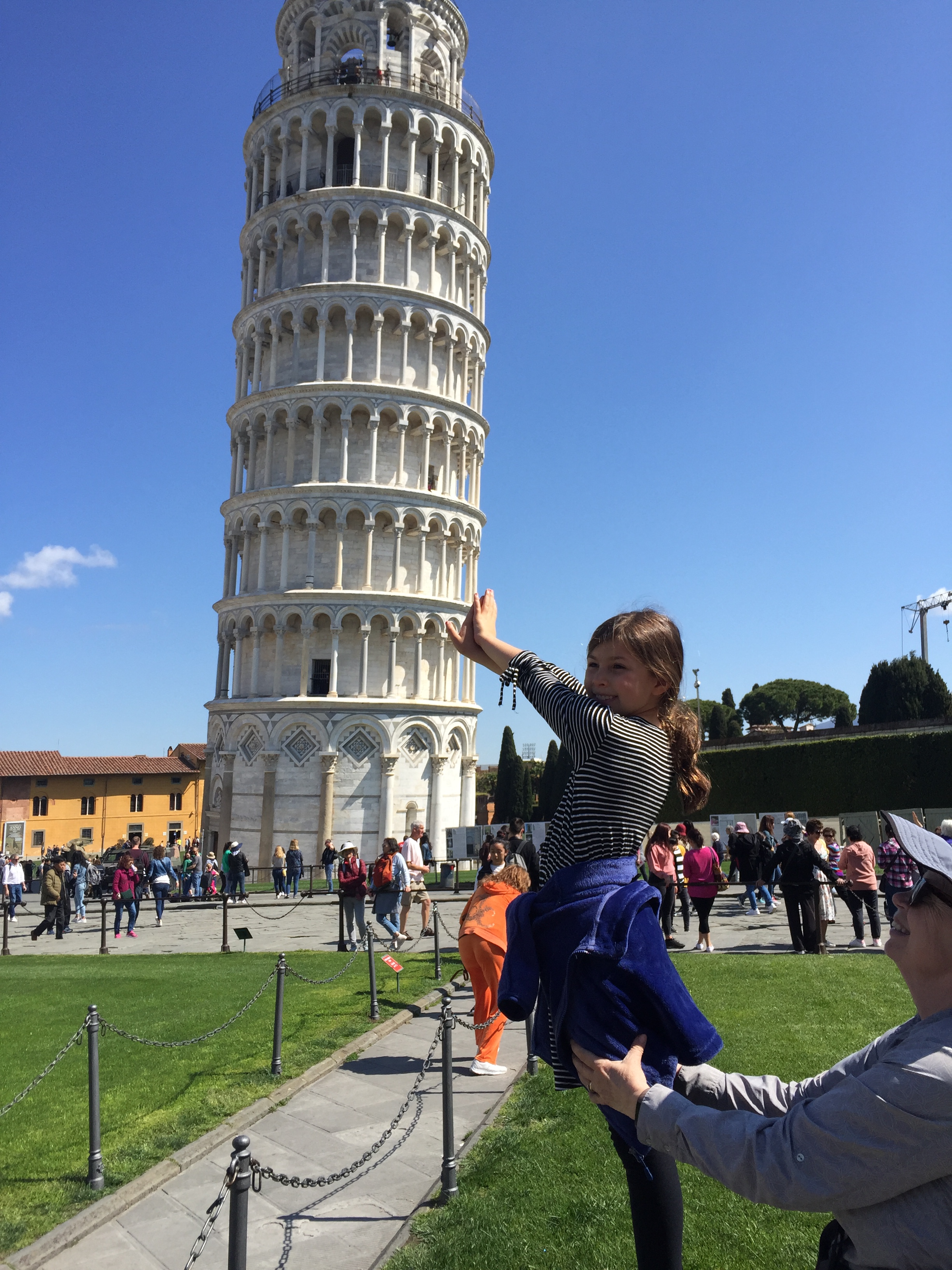 Meanwhile in Pisa… Penelope and my folks had arrived to see (and climb!) the famous Leaning Tower. My mother stayed on the ground, since her knee has been more painful than usual of late. They sent along these great pics.