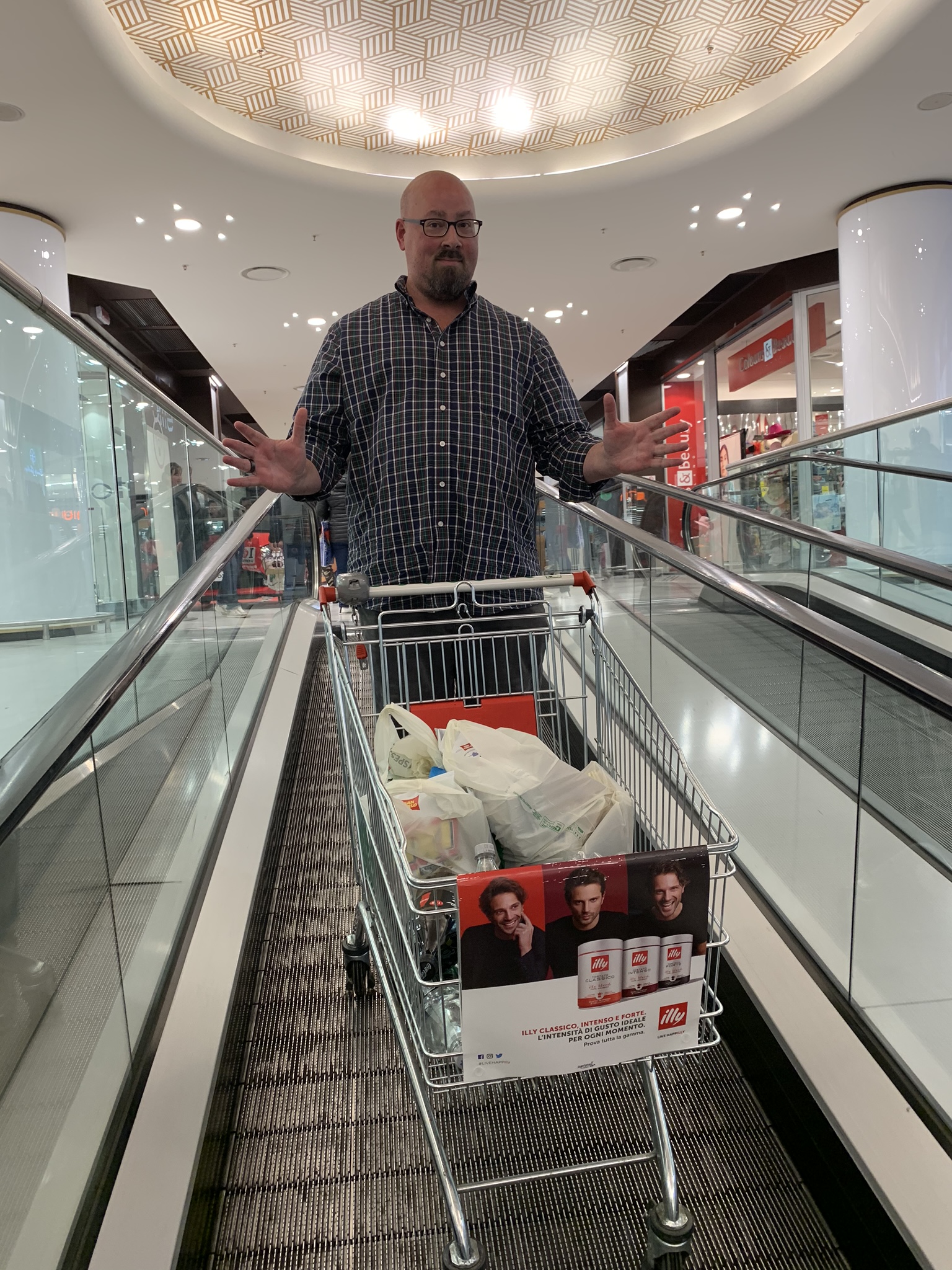 We drove onward to our next AirBnB, west of Asciano. En route, we stopped at one of the few grocery stores open on Palm Sunday, just outside of Siena. The store was located inside a small mall, and it was fun to see this slice of suburban life. I was particularly impressed by the escalators in the mall, which had been designed to hold grocery carts at an angle.