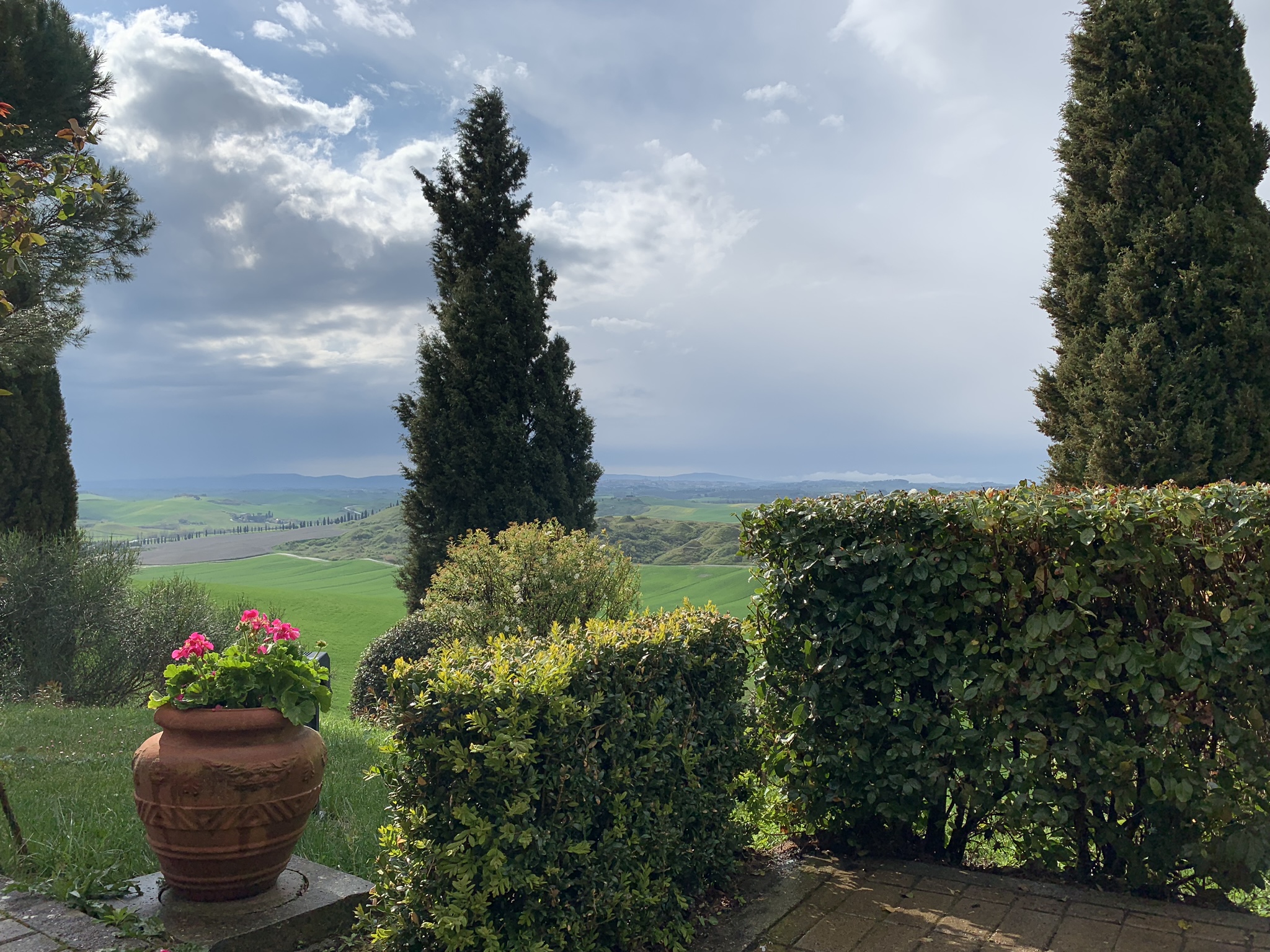 We finally arrived to the top of a hillside in Tuscany, up a cypress-lined drive, to our new temporary home. And what a view. The rain had cleared, and the birds were singing, and it was just perfectly beautiful.