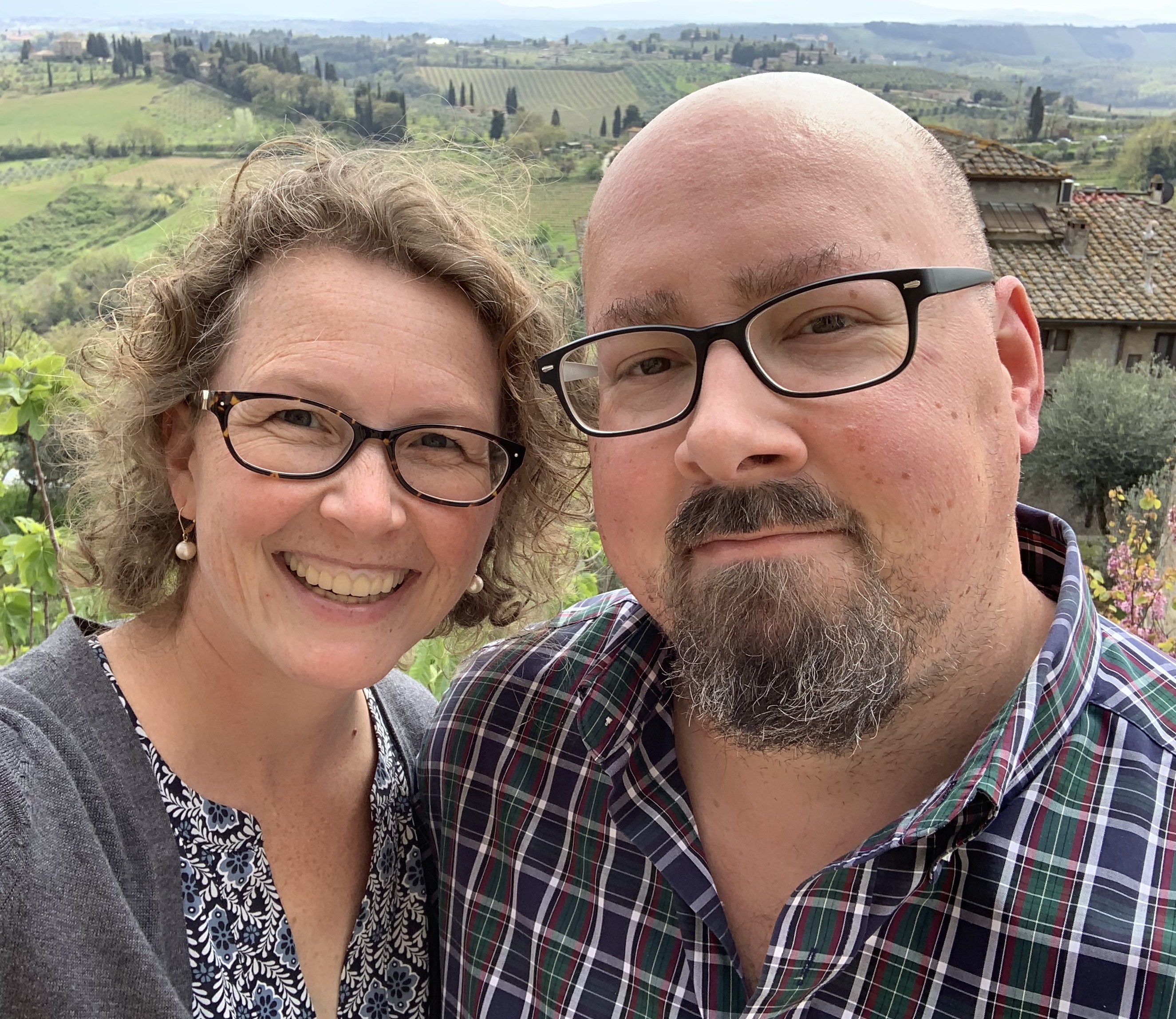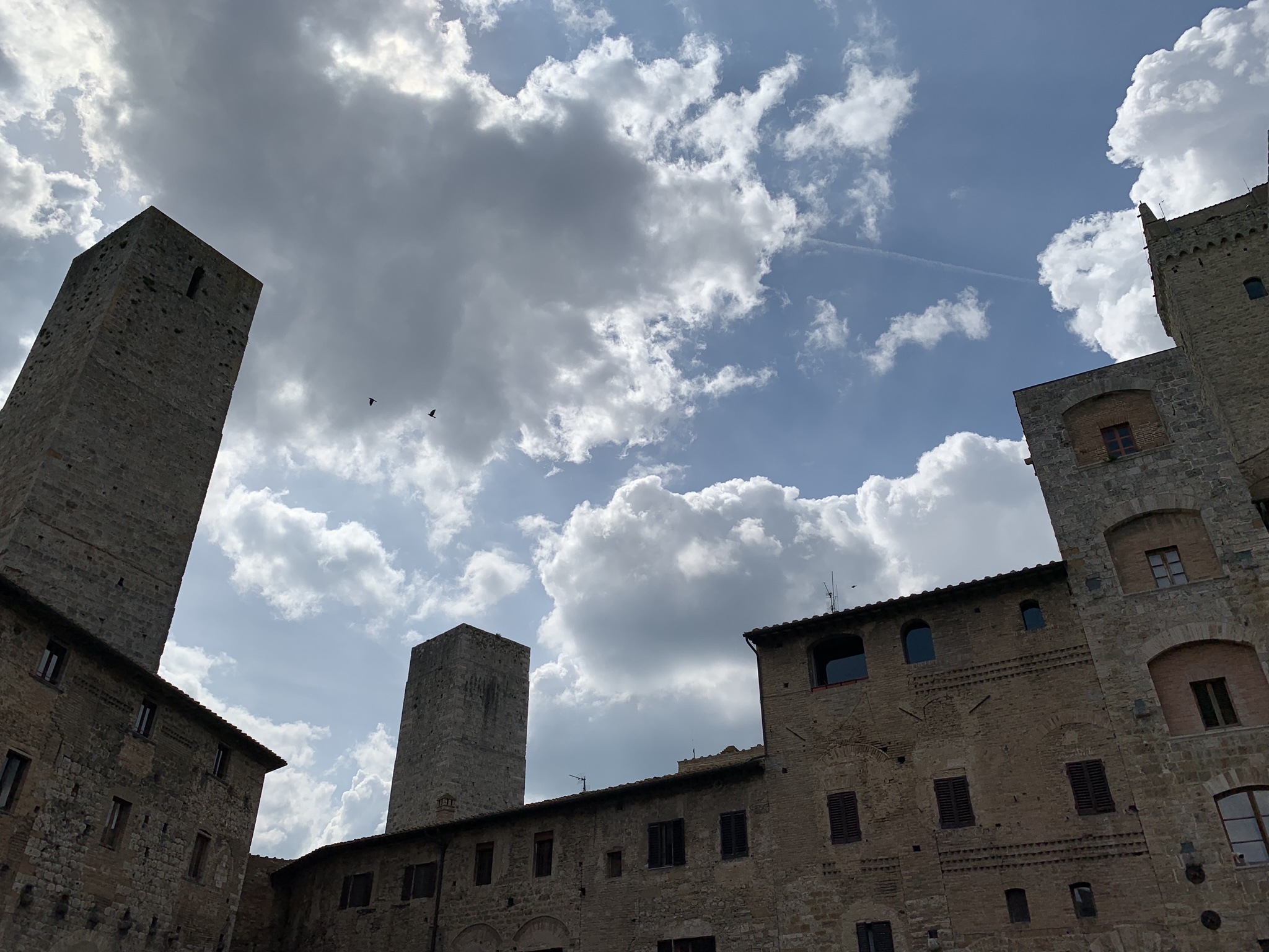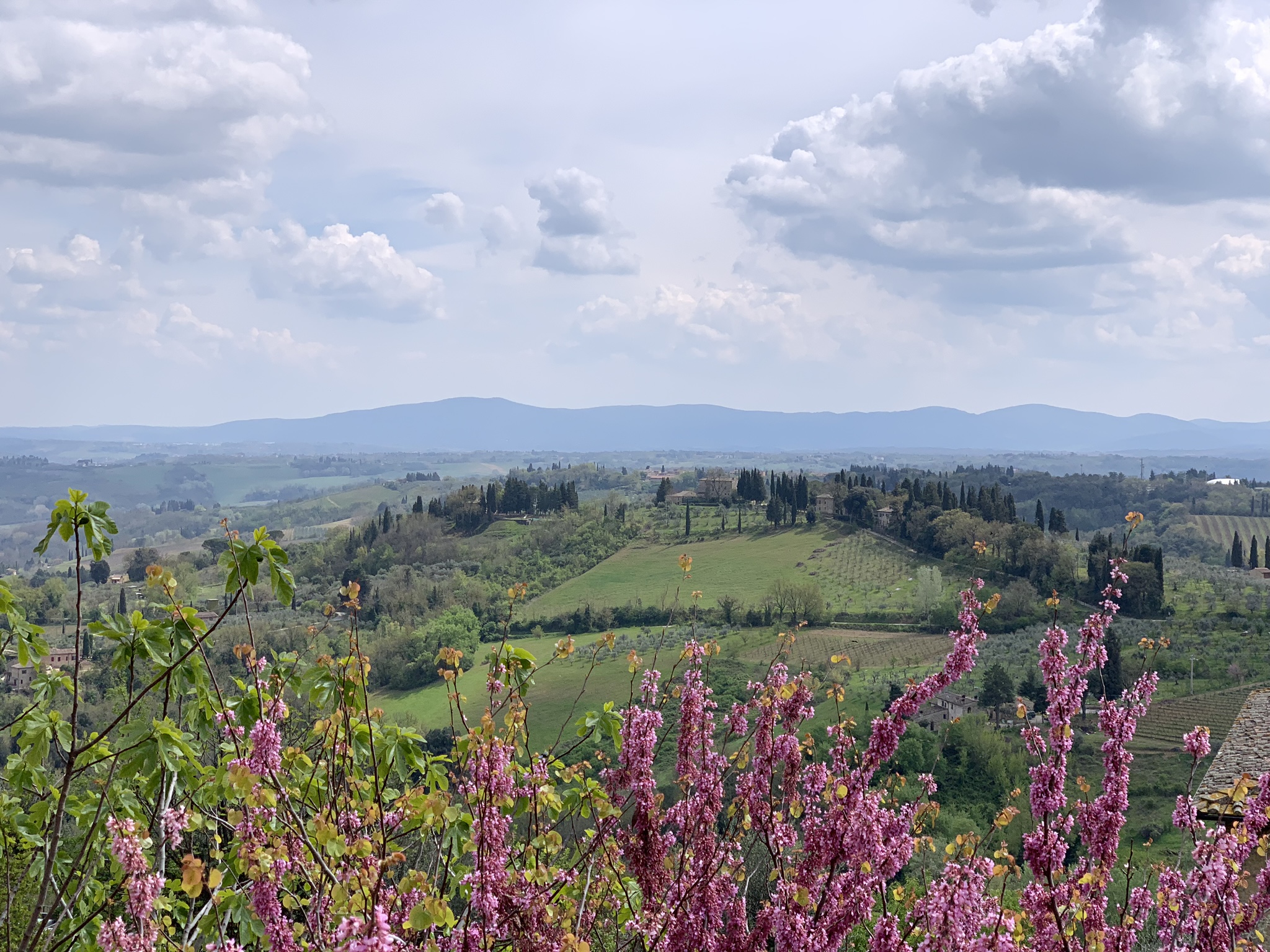So Penelope headed off to the grandparents’ camper… and on to Lucca, Pisa, Padua, and Venice, while we finished packing up the rest of the baggage and went to pick up our rental car. We’d reserved an adorable Fiat 500L, which was surprisingly roomy. After securing our bags in the trunk, adjusting all the mirrors, and reviewing the directions, we were off! From Florence to San Gimignano, our first stop. It took several tries to leave Florence though—we kept taking slightly wrong turns and heading back into the city instead of out to the countryside. But eventually we made it to the open landscapes around the city.