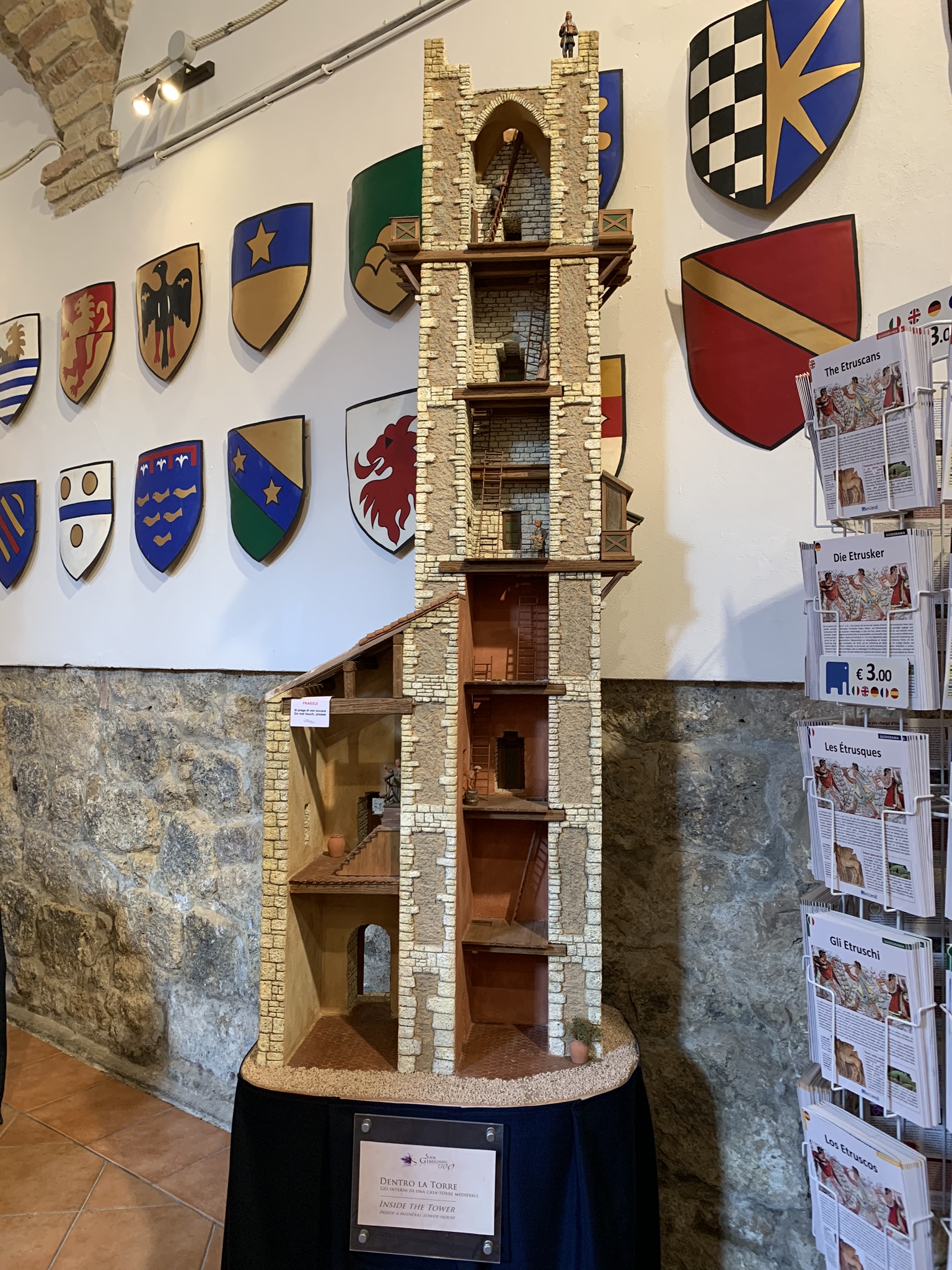 Inside one shop, we found a wonderful scale model of San Gimignano, circa 1300—along with the interior architecture of one of the towers. Loved this idea—and it was a great aid in thinking about how these towers were actually used.