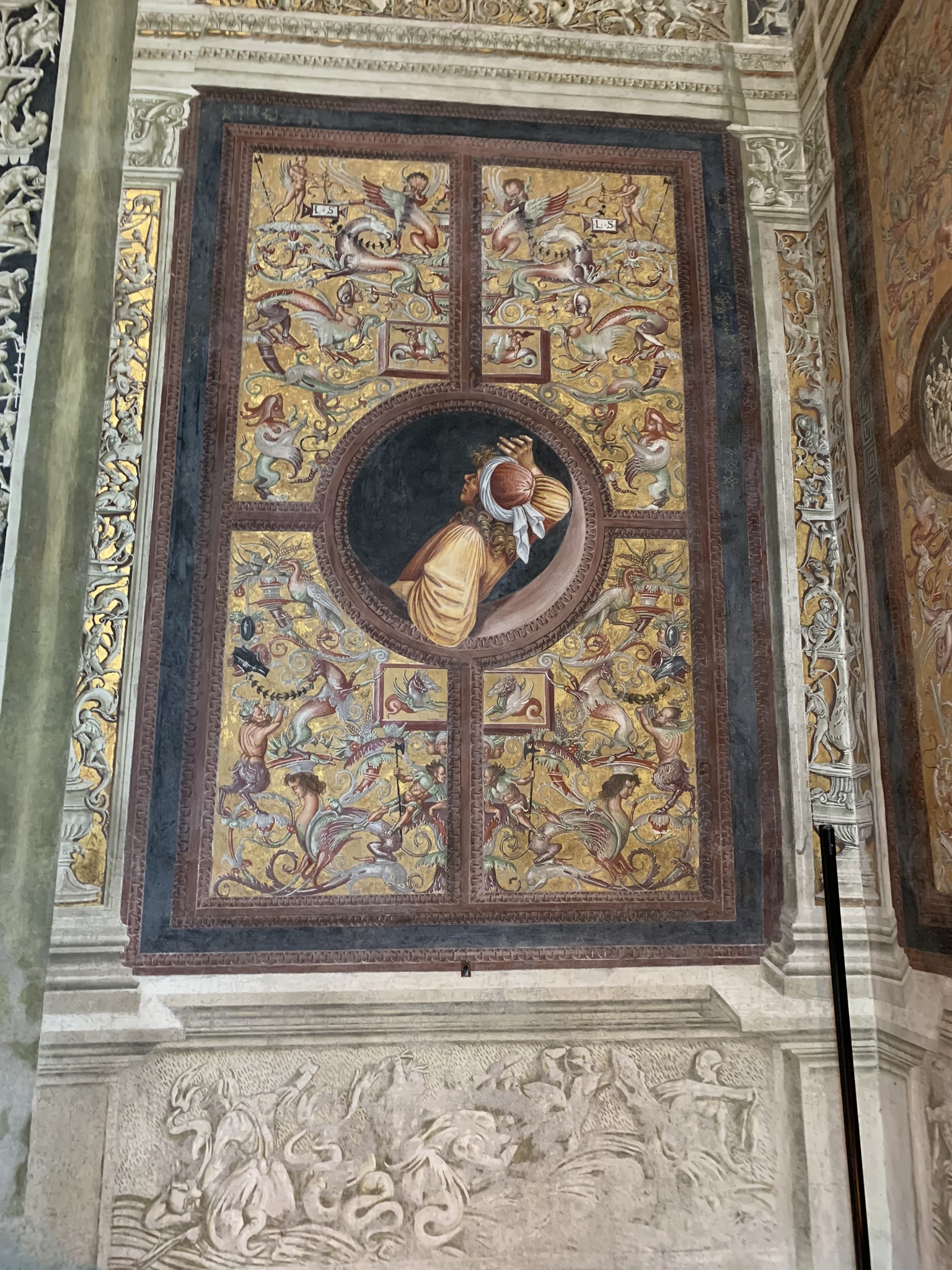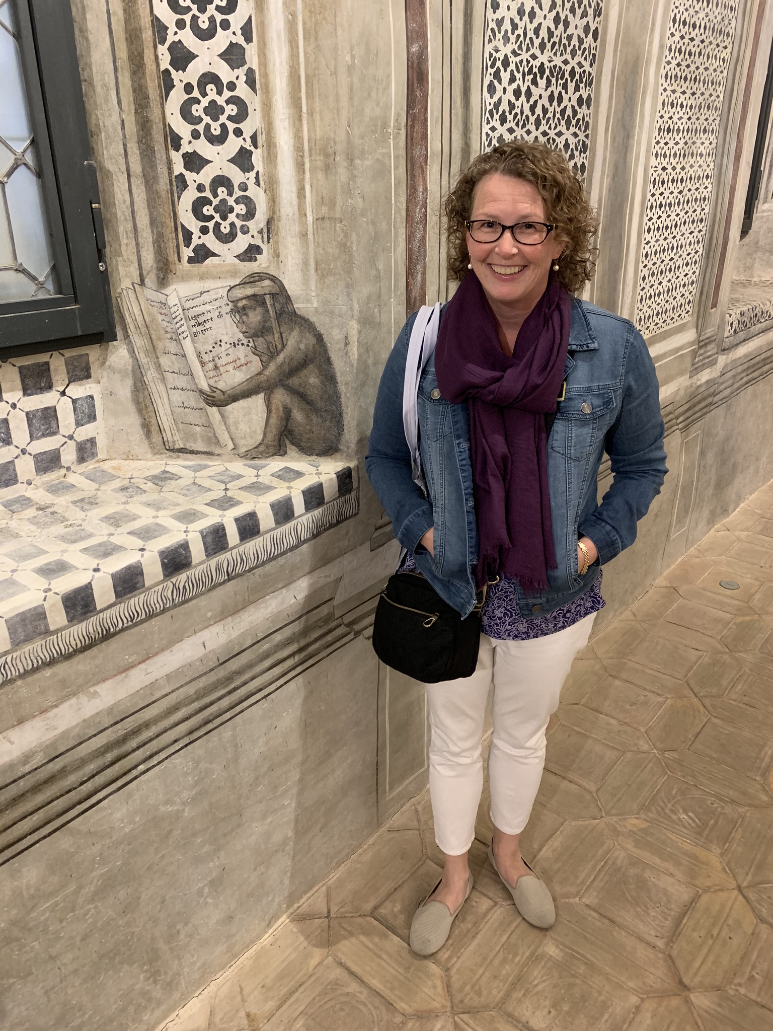 My favorite spot in the museum was definitely the Libreria Alberi, the beautifully decorated room that housed the personal library of Archbishop Antonio Alberi. The frescoes are from the same time period as the Chapel of San Brizio, so they are mostly like by Signorelli and his assistants—but here the subjects are secular. Around the walls are portraits of authors who were contained in this library, in the fields of law, philosophy, history, poetry, and more. But best of all was the creature perched on a window nook: a reading monkey, complete with glasses.
