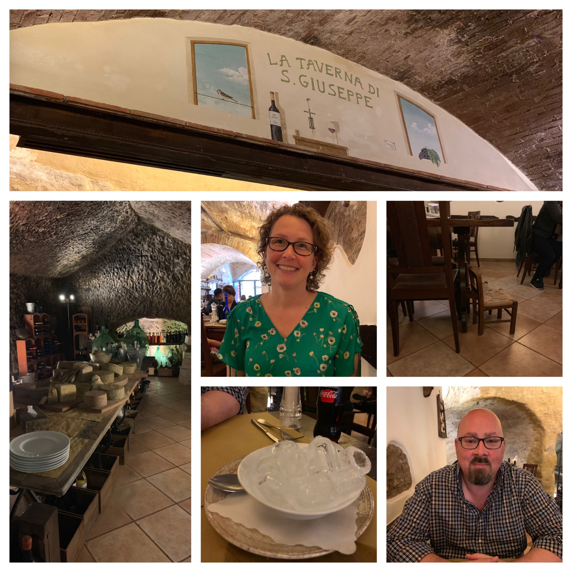 On Thursday we were off to our final Tuscan hilltown, Siena—just twenty minutes from our rental home. We spent a lazy morning at home, arriving in town in time for our noon reservation at La Taverna di San Giuseppe. The restaurant—in a 3rd century BC Etruscan home (!!)—is also Michelin recommended, so we knew were in for a treat. And what a meal it was—eggplant starter, beef pappardelle, steak and duck entrees, and finally, the hazelnut soufflé for dessert. Delizioso!