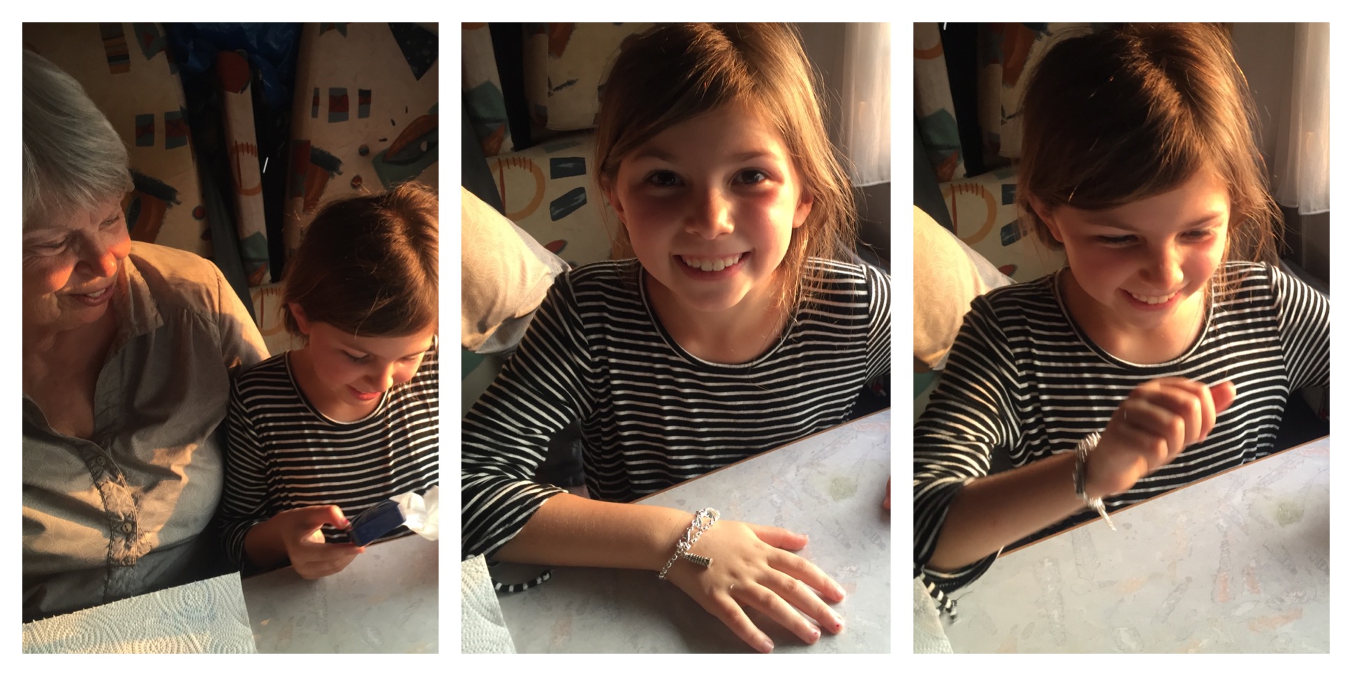 And that same day, in a campground near Venice, Penelope celebrated her upcoming birthday with her grandparents—and they gifted her with a beautiful charm bracelet, with charms for this amazing adventure we’re on: the Colosseum, the Leaning Tower, and a gondola. They’ve promised to add an Eiffel Tower when we’re in Paris. We’ll have to find a Kiwi bird when we get home! As you can see, she was positively thrilled with this wonderful present. 🙂