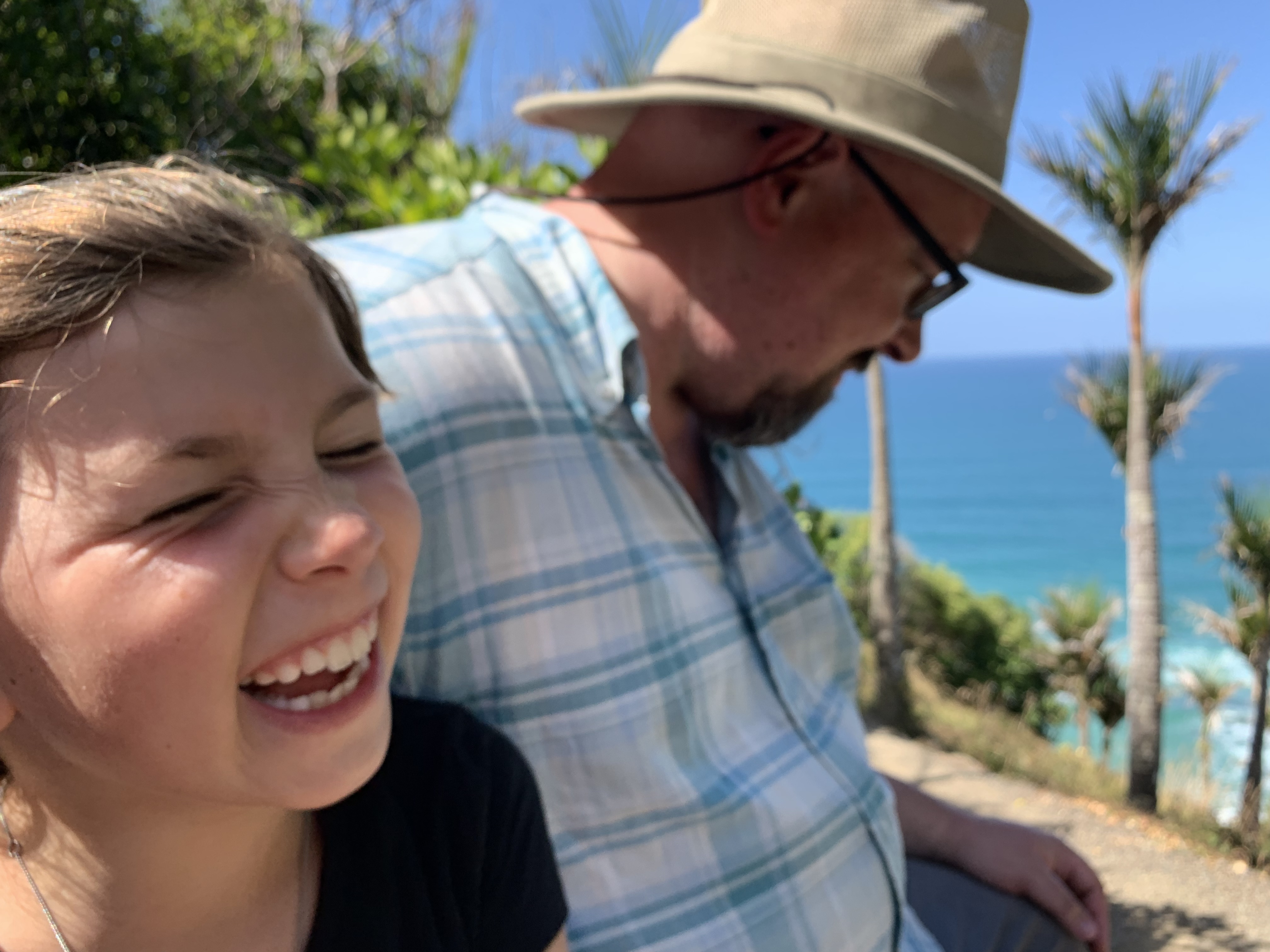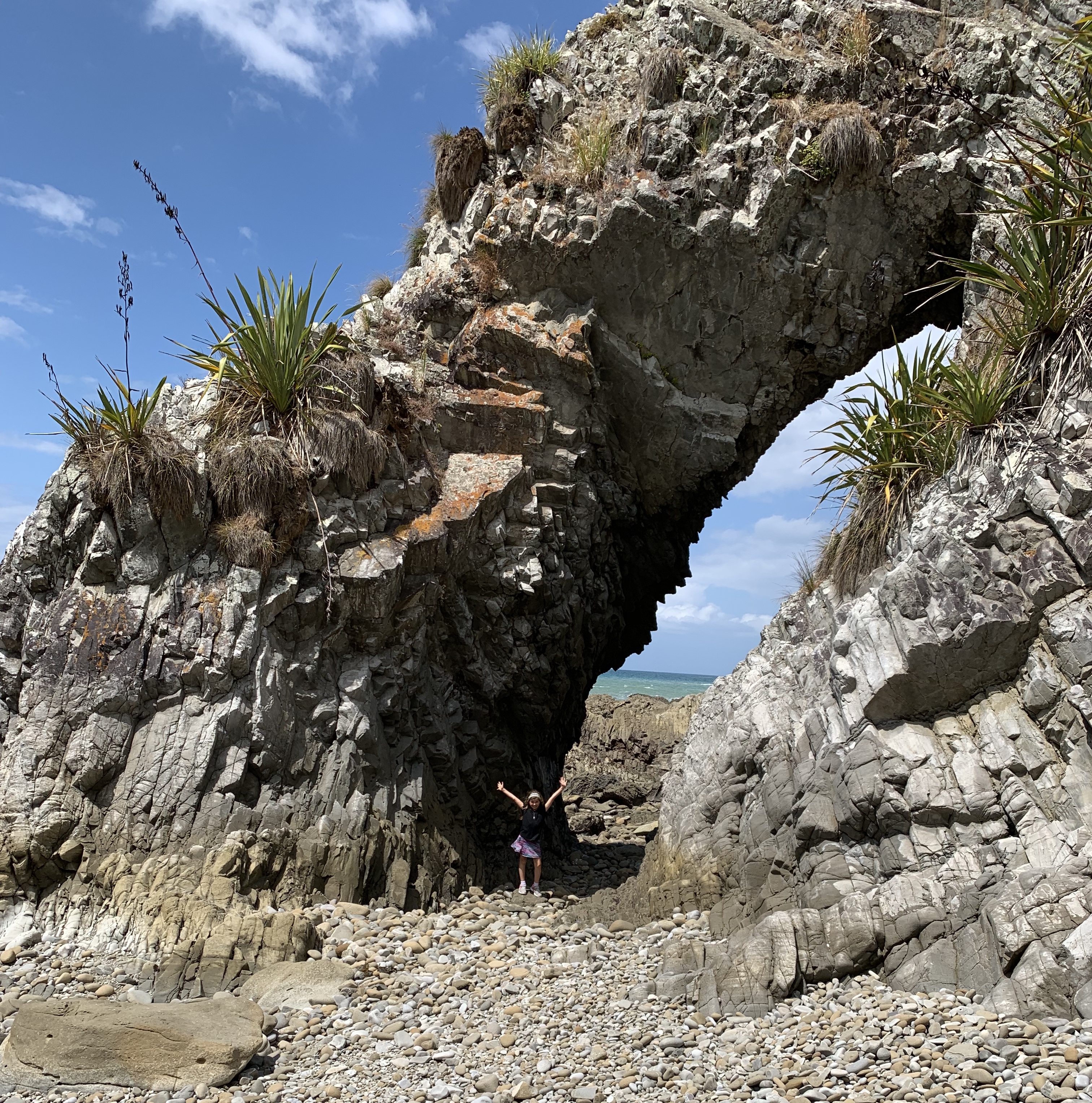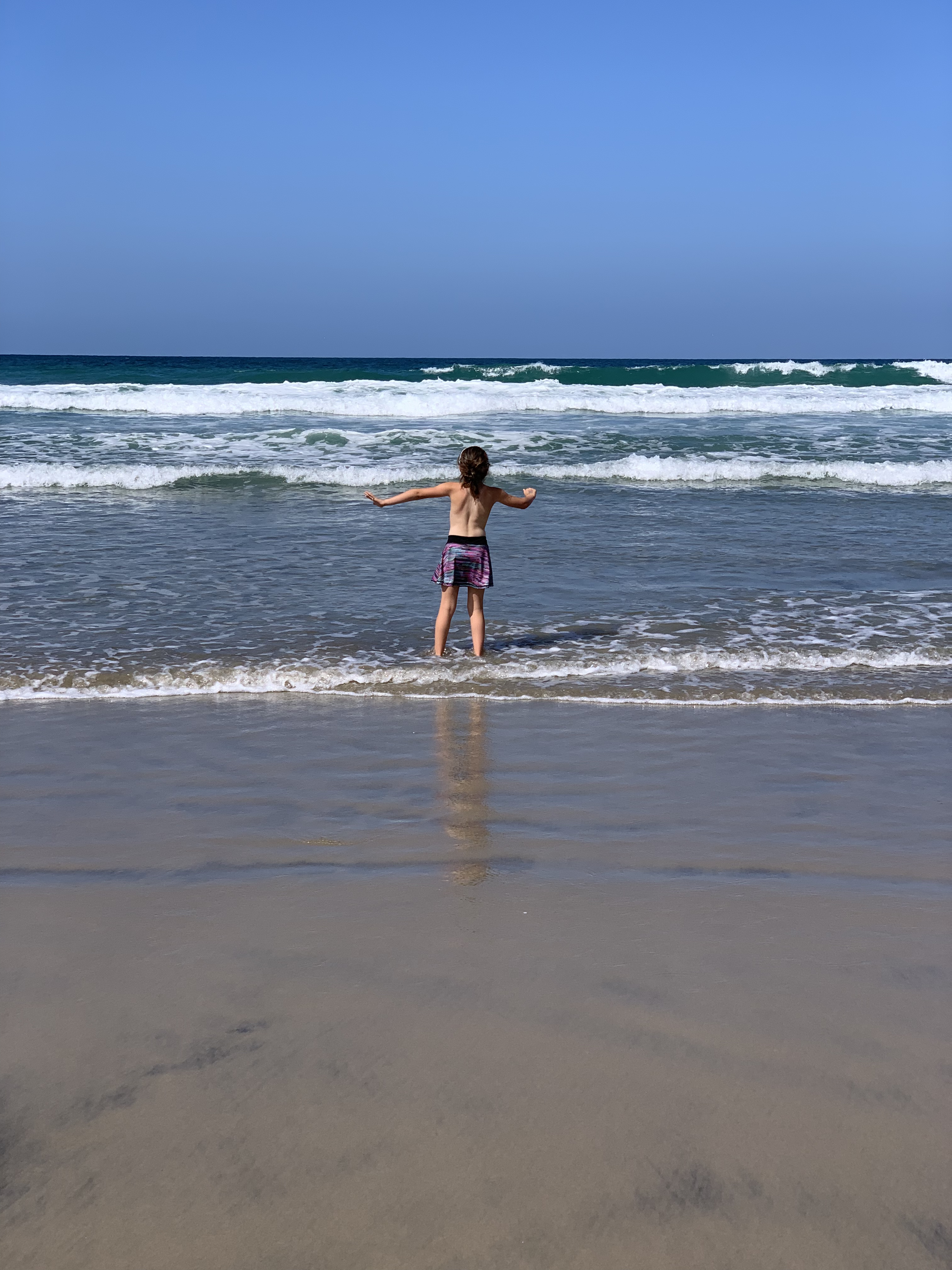 And she was delighted to discover two kids from our Top10 campground there as well. They spent a happy hour or two swimming, jumping in the waves, collecting seaweed, and building sand castles. We waded and chatted with the girls’ mum; their family is newly emigrated from England, and they are staying the Top10 until their rental house is available at the beginning of next month.