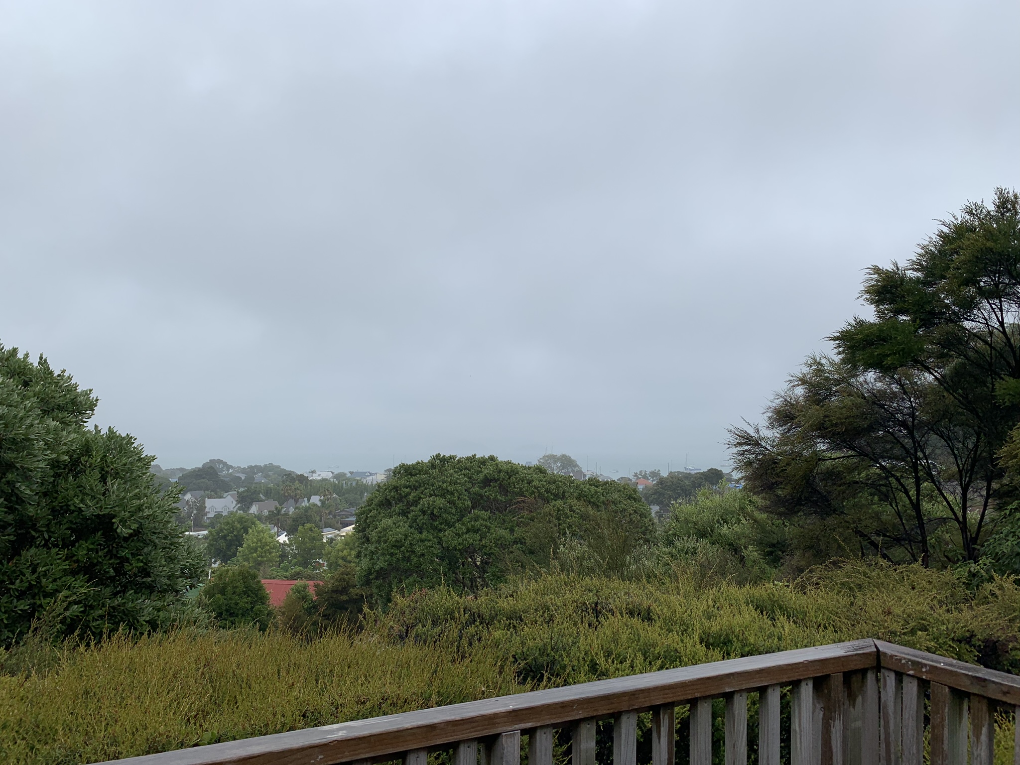 On Wednesday we woke to a rainy, misty morning—and the bay view from our cabin deck showed not the gorgeous bay but instead, a total white-out.