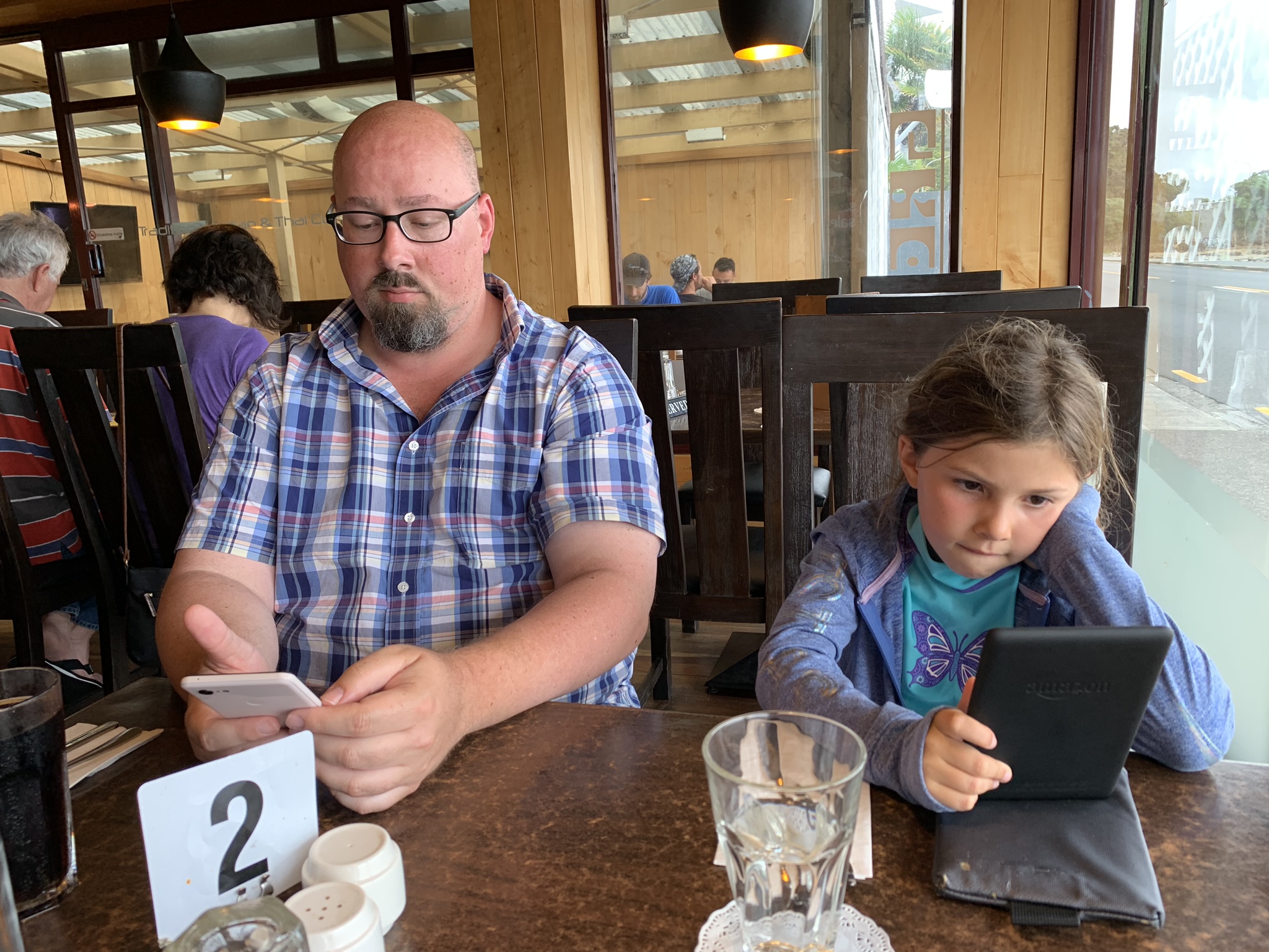 Then it was back at home for dinner and an evening in our cabin. Since the forecast prevented time at the Top10 playground, Penelope had the luxury of another DVD rental from the reception collection. This time she picked Nut Job, which is evidently a heist film about squirrels. Jeremy and I opted not to watch this one, and I began packing us up for our last Top10 of the trip, on the Kauri Coast.