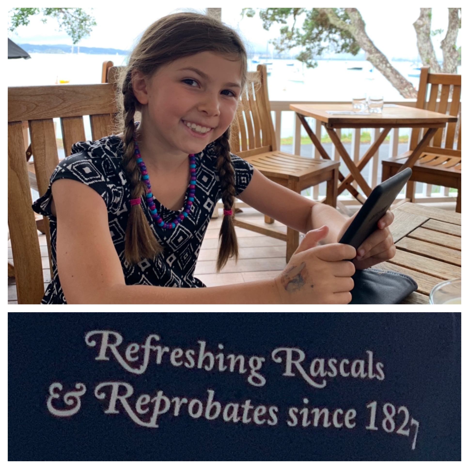 So it was the right day for a lazy morning at home, with blogging and reading and schoolwork. At lunchtime we decided to head into Russell’s tiny downtown for a bit to eat at the historic inn and restaurant, the Duke of Marlborough. Lovely to eat outside even in the showers!